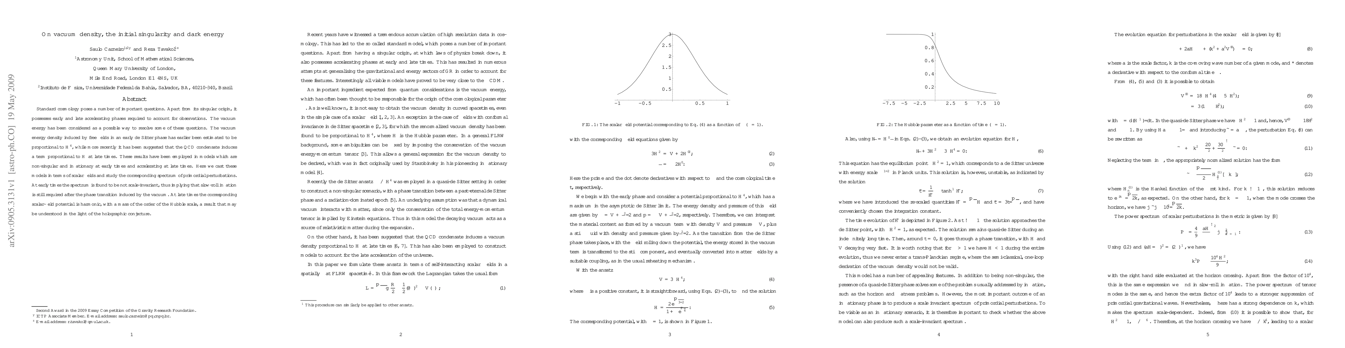 Standard cosmology poses a number of important questions. Apart from its singular origin, it possesses early and late accelerating phases required to account for observations. The vacuum energy has been considered as a possible way to resolve some of these questions. The vacuum energy density induced by free fields in an early de Sitter phase has earlier been estimated to be proportional to $H^4$, while more recently it has been suggested that the QCD condensate induces a term proportional to H at late times. These results have been employed in models which are non-singular and inflationary at early times and accelerating at late times. Here we cast these models in terms of scalar fields and study the corresponding spectrum of primordial perturbations. At early times the spectrum is found to be not scale-invariant, thus implying that slow-roll inflation is still required after the phase transition induced by the vacuum. At late times the corresponding scalar-field potential is harmonic, with a mass of the order of the Hubble scale, a result that may be understood in the light of the holographic conjecture.