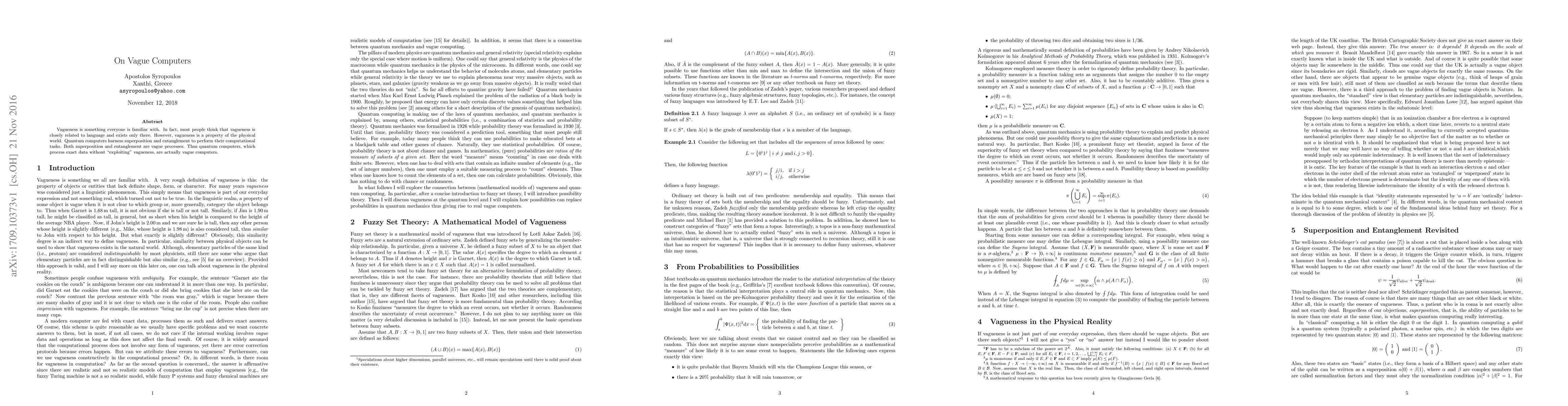 Vagueness is something everyone is familiar with. In fact, most people think that vagueness is closely related to language and exists only there. However, vagueness is a property of the physical world. Quantum computers harness superposition and entanglement to perform their computational tasks. Both superposition and entanglement are vague processes. Thus quantum computers, which process exact data without "exploiting" vagueness, are actually vague computers.