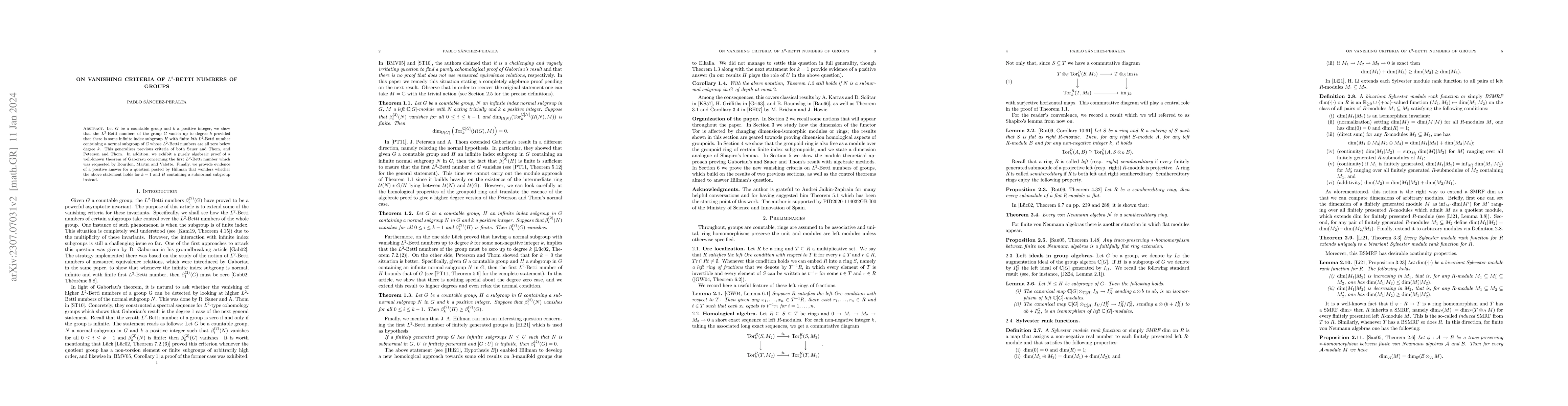 This paper establishes vanishing criteria for $L^2$-Betti numbers of countable groups up to degree $k$, generalizing previous results and providing a purely algebraic proof for Gaboriau's theorem on the first $L^2$-Betti number. It also offers evidence supporting Hillman's conjecture regarding the case when $k=1$ and $H$ contains a subnormal subgroup.