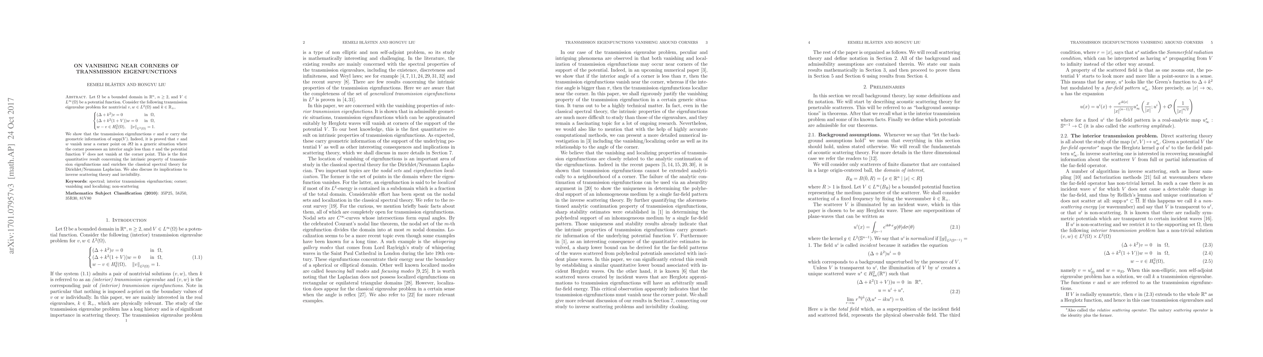 This research paper proves that transmission eigenfunctions carry geometric information of a potential function's support near corners in a bounded domain, with implications for inverse scattering theory and invisibility.
