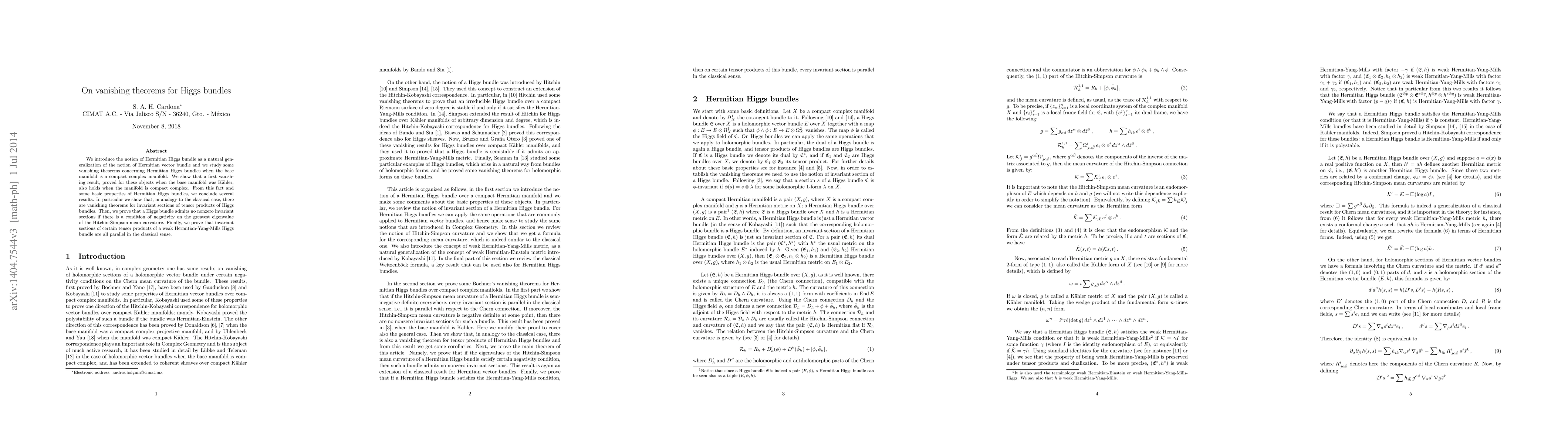This paper introduces Hermitian Higgs bundles as a generalization of Hermitian vector bundles and proves vanishing theorems for these bundles on compact complex manifolds, extending results previously known for Kähler manifolds. It also establishes conditions under which Higgs bundles admit no nonzero invariant sections and proves that certain tensor products of weak Hermitian-Yang-Mills Higgs bundles have parallel invariant sections.