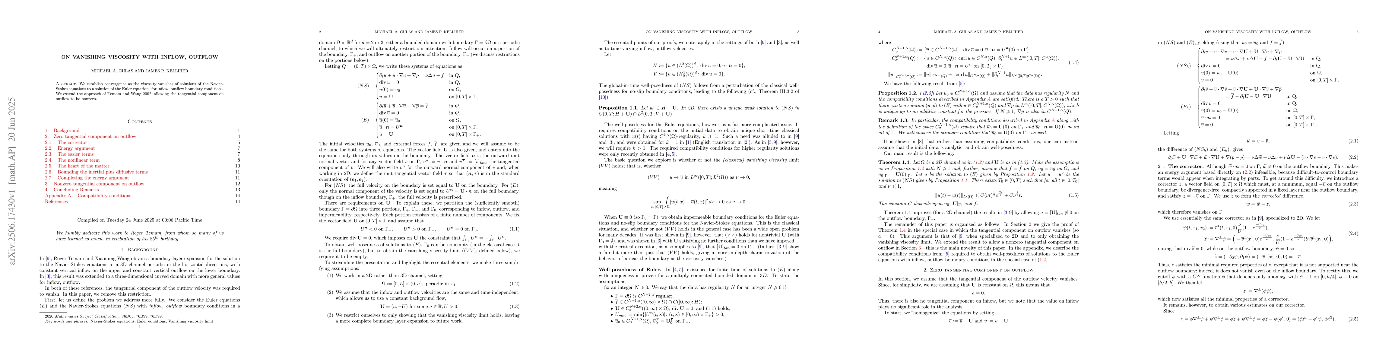 We establish convergence as the viscosity vanishes of solutions of the Navier-Stokes equations to a solution of the Euler equations for inflow, outflow boundary conditions. We extend the approach of Temam and Wang 2002, allowing the tangential component on outflow to be nonzero.