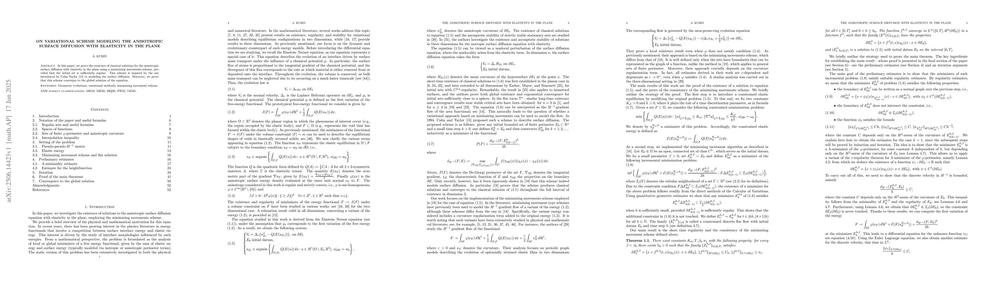 In this paper, we prove the existence of classical solutions for the anisotropic surface diffusion with elasticity in the plane using a minimizing movements scheme, provided that the initial set is sufficiently regular. This scheme is inspired by the one introduced by Cahn-Taylor [15] to modeling the surface diffusion. Moreover, we prove that this scheme converges to the global solution of the equation.