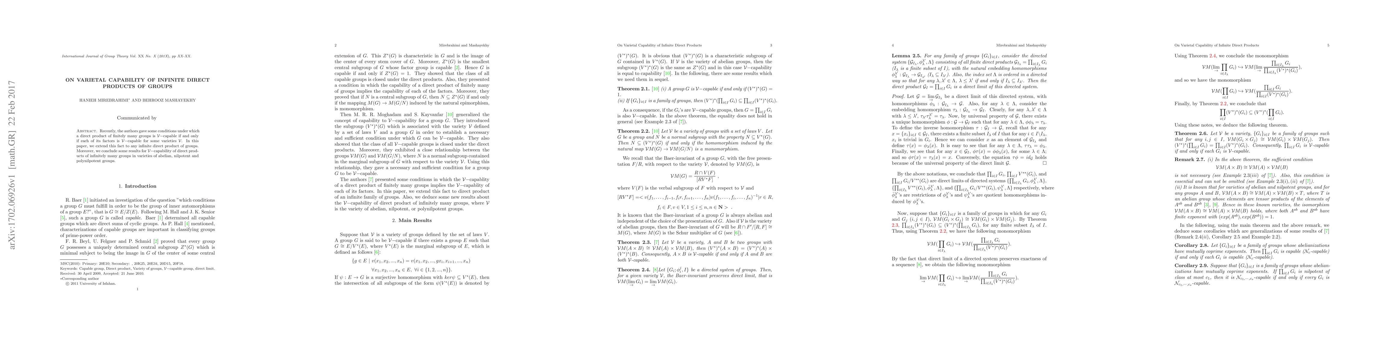 This paper extends the $\mathcal{V}$-capability conditions for direct products of groups to infinite products, showing that an infinite direct product is $\mathcal{V}$-capable if and only if each factor group is $\mathcal{V}$-capable. It also provides results for $\mathcal{V}$-capability in varieties of abelian, nilpotent, and polynilpotent groups.