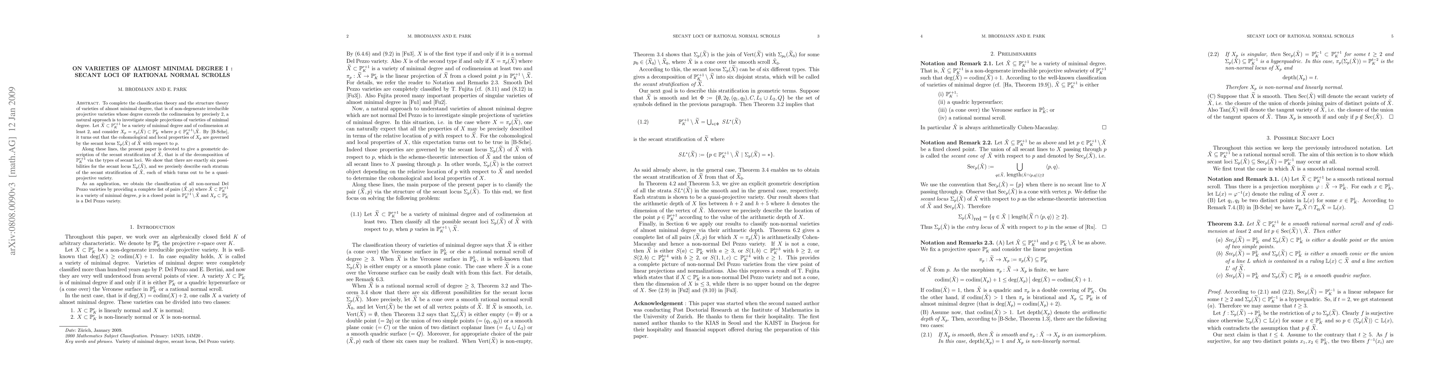 This paper classifies varieties of almost minimal degree by examining the secant loci of rational normal scrolls. It identifies six types of secant loci and describes their stratifications, leading to a complete classification of non-normal Del Pezzo varieties.