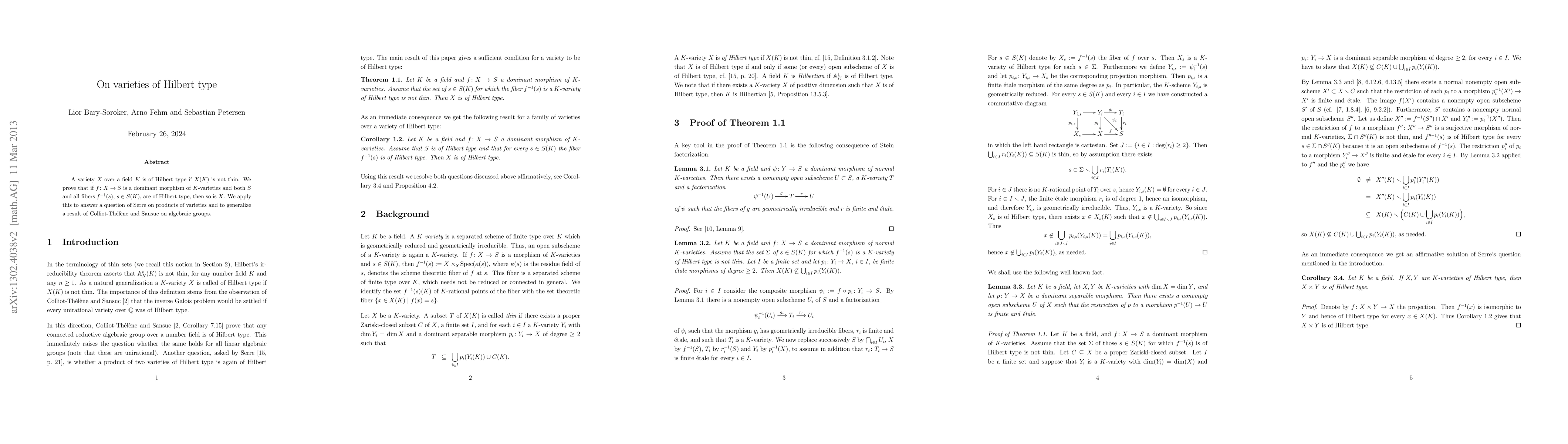 A variety X over a field K is of Hilbert type if the set of rational points X(K) is not thin. We prove that if f: X\to S is a dominant morphism of K-varieties and both S and all fibers f^{-1}(s), s in S(K), are of Hilbert type, then so is X. We apply this to answer a question of Serre on products of varieties and to generalize a result of Colliot-Th'el`ene and Sansuc on algebraic groups.