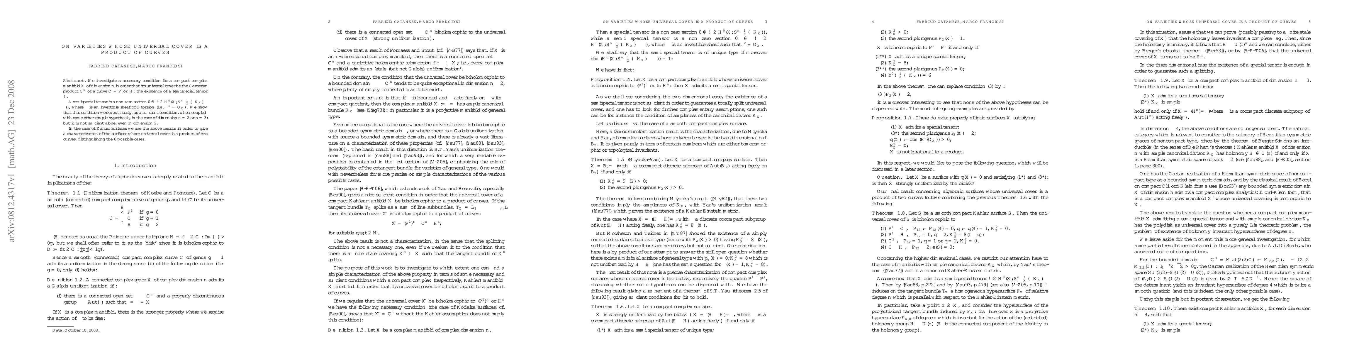 We investigate a necessary condition for a compact complex manifold X of dimension n in order that its universal cover be the Cartesian product $C^n$ of a curve $C = \PP^1 or \HH$: the existence of a semispecial tensor $\omega$. A semispecial tensor is a non zero section $ 0 \neq \omega \in H^0(X, S^n\Omega^1_X (-K_X) \otimes \eta) $), where $\eta$ is an invertible sheaf of 2-torsion (i.e., $\eta^2\cong \hol_X$). We show that this condition works out nicely, as a sufficient condition, when coupled with some other simple hypothesis, in the case of dimension $n= 2$ or $ n= 3$; but it is not sufficient alone, even in dimension 2. In the case of K\"ahler surfaces we use the above results in order to give a characterization of the surfaces whose universal cover is a product of two curves, distinguishing the 6 possible cases.