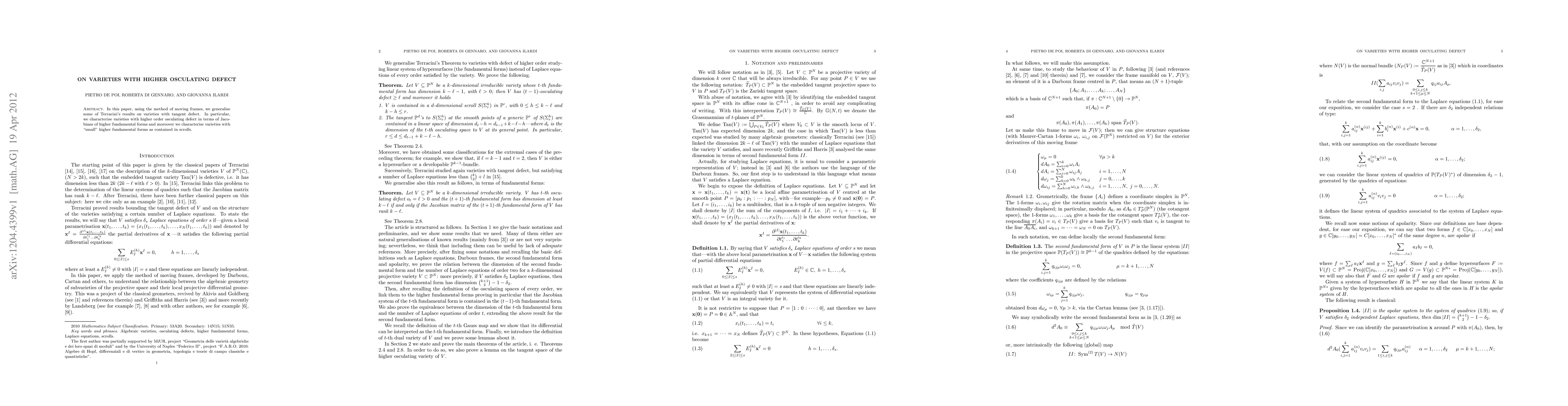 This paper generalises Terracini's results on varieties with tangent defect using moving frames, characterising those with higher osculating defect via Jacobians of higher fundamental forms, and showing that varieties with "small" higher fundamental forms are contained within scrolls.