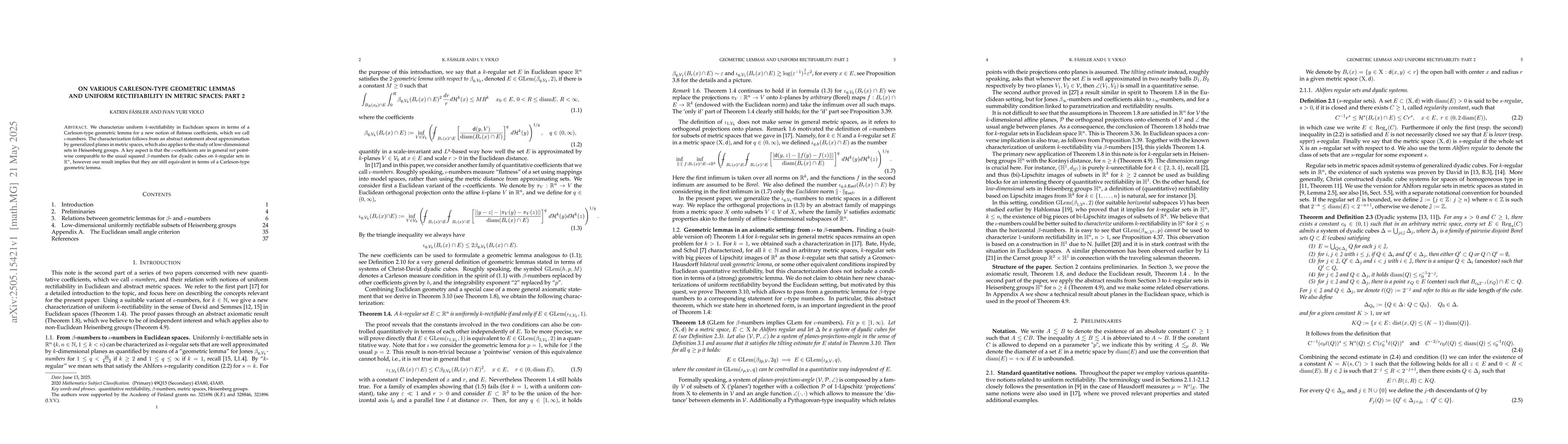 Researchers characterize uniform k-rectifiability in Euclidean spaces using a new notion of flatness coefficients called \u03bb-numbers, which equates to Carleson-type geometric lemmas and offers insights into metric space geometry and low-dimensional sets.