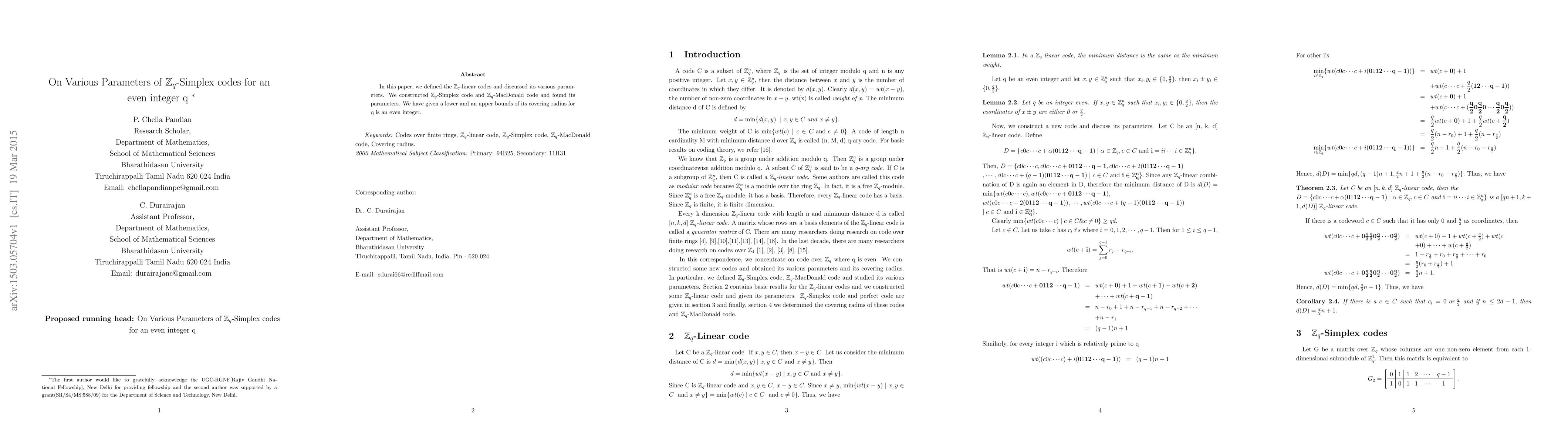 In this paper, we defined the $Z_q$-linear codes and discussed its various parameters. We constructed $Z_q$-Simplex code and $Z_q$-MacDonald code and found its parameters. We have given a lower and an upper bounds of its covering radius for q is an even integer.