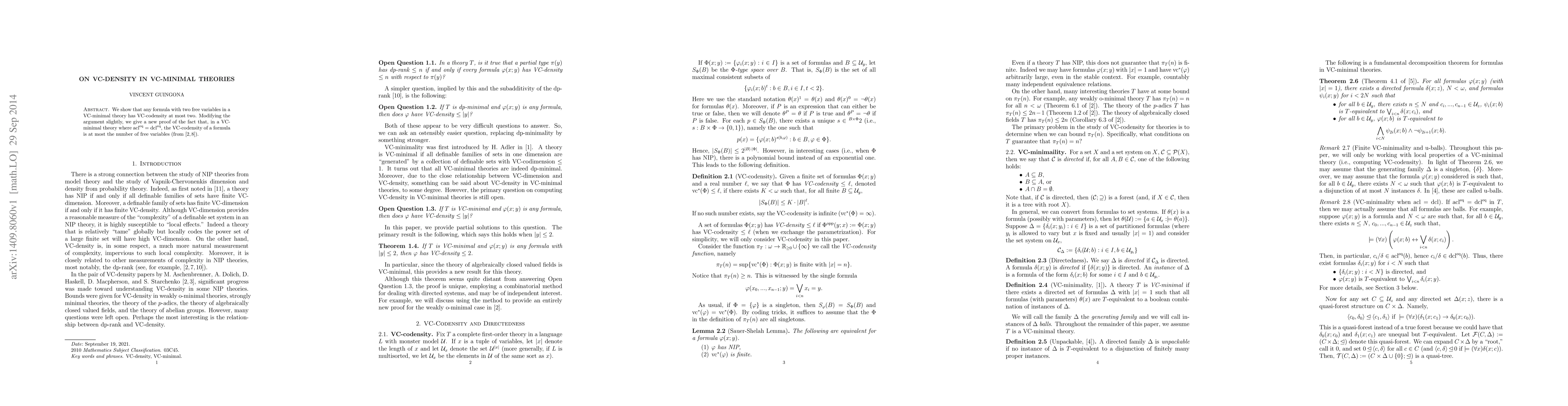 Summary: This paper demonstrates that formulas with two free variables in VC-minimal theories have VC-codensity at most two and provides a new proof for the VC-codensity of formulas in VC-minimal theories with acl = dcl, showing it is at most the number of free variables.