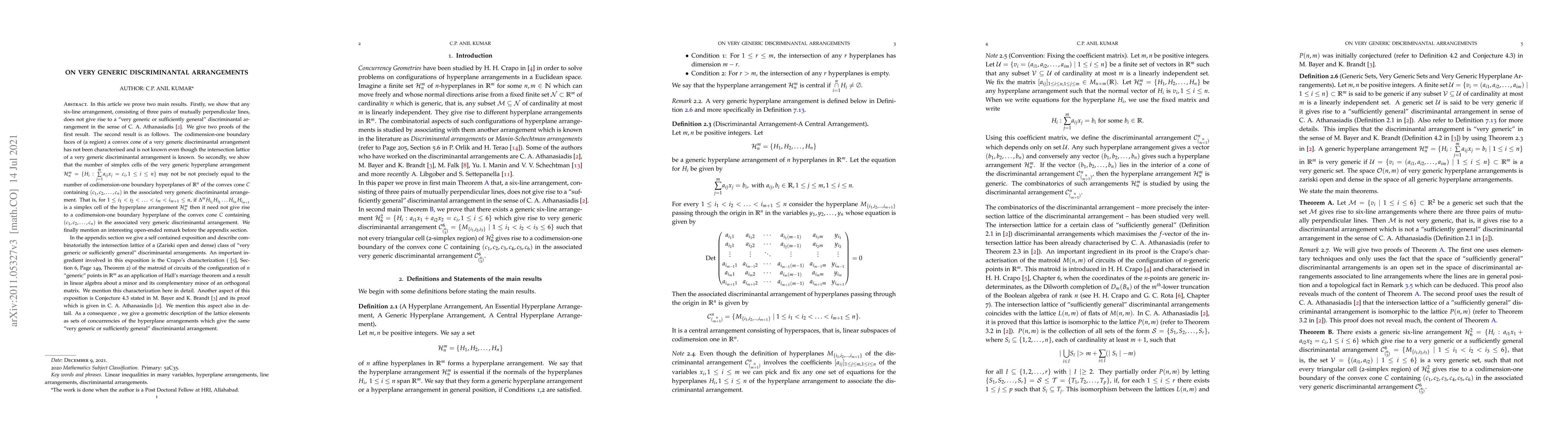 Researchers prove two main results: no six-line arrangement with three pairs of mutually perpendicular lines leads to a 'very generic' discriminantal arrangement, and the codimension-one boundary faces of such arrangements remain unknown.