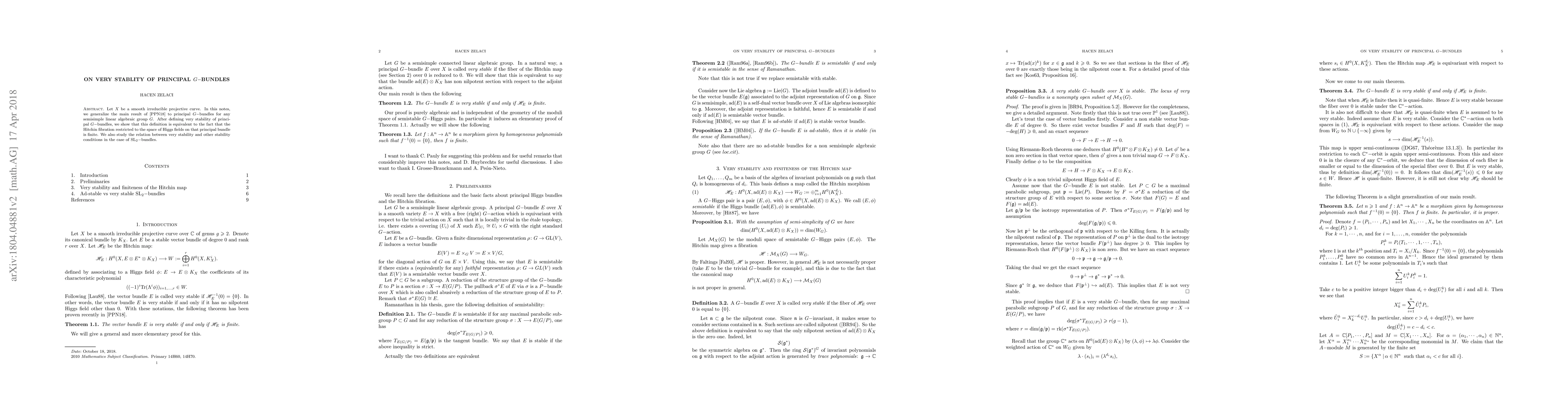Let $X$ be a smooth irreducible projective curve. Recently, Pauly and Pe\'on-Nieto shows that a vector bundle over $X$ is very stable if and only if the Hitchin map on the vector space of Higgs field on that vector bundle is proper. In this notes, we generalize this result to principal $G-$bundles for any semisimple linear algebraic group $G$. We also study the relation between very stability and other stability conditions in the case of $\text{SL}_2-$bundles.