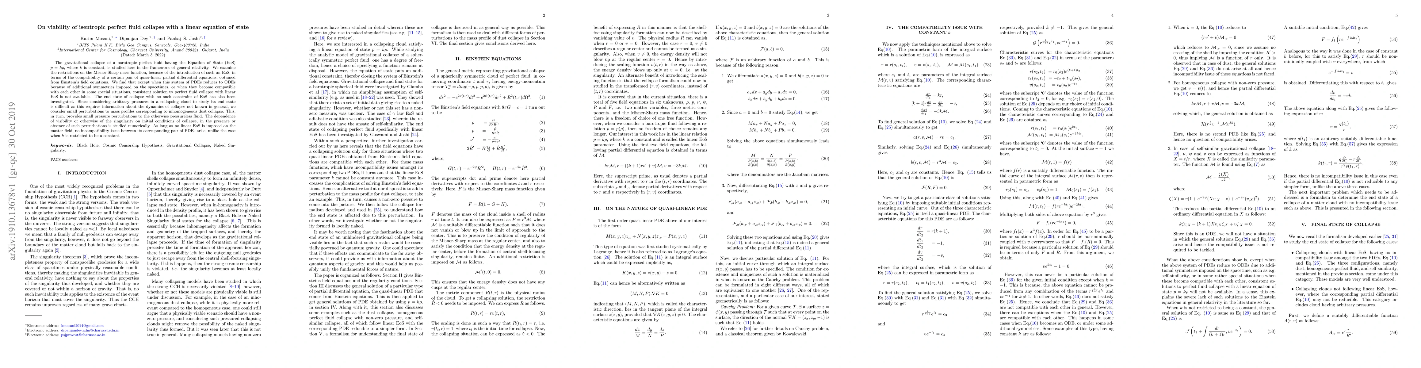 This paper investigates the gravitational collapse of a barotropic perfect fluid with a linear equation of state ($p=k\rho$) in general relativity, finding that consistent solutions are generally unavailable due to incompatibilities in the derived partial differential equations. Numerical studies on small perturbations reveal the dependence of singularity visibility on initial conditions, highlighting that no such incompatibility arises when the linear equation of state is not imposed.