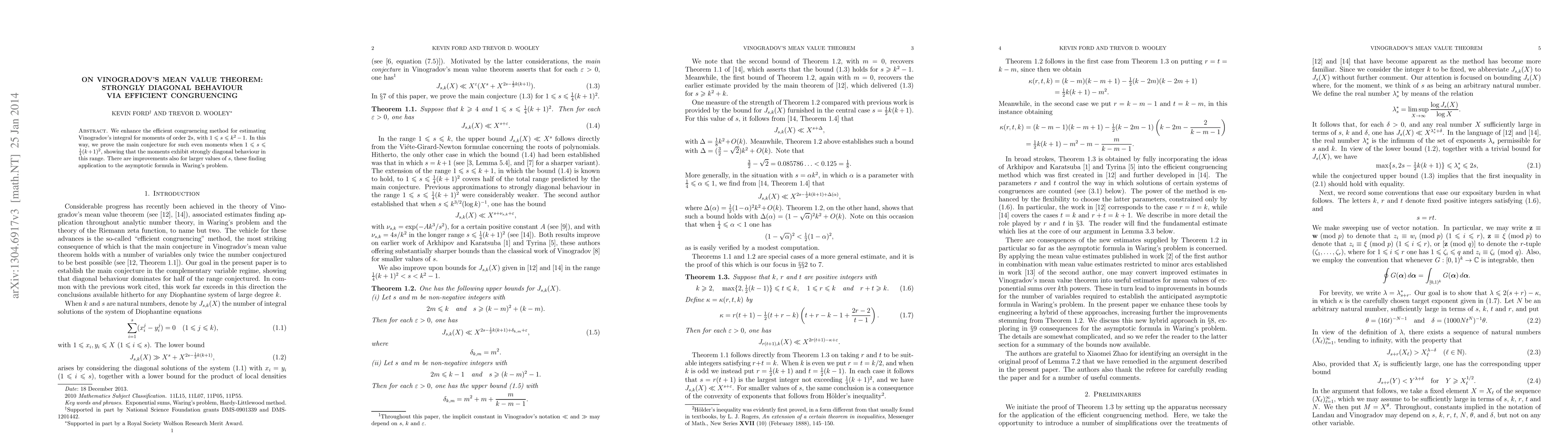We enhance the efficient congruencing method for estimating Vinogradov's integral for moments of order $2s$, with $1\le s\le k^2-1$. In this way, we prove the main conjecture for such even moments when $1\le s\le \tfrac{1}{4}(k+1)^2$, showing that the moments exhibit strongly diagonal behaviour in this range. There are improvements also for larger values of $s$, these finding application to the asymptotic formula in Waring's problem.