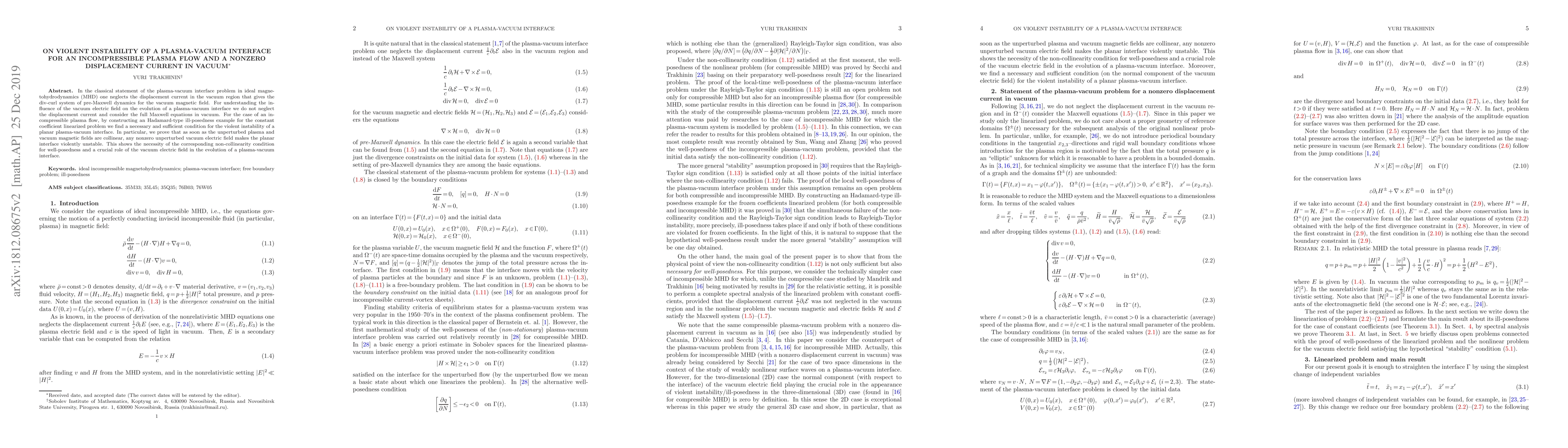 This work differs from previous studies by considering the full Maxwell equations in vacuum with nonzero displacement current, revealing the critical role of the vacuum electric field in the evolution of plasma-vacuum interfaces.