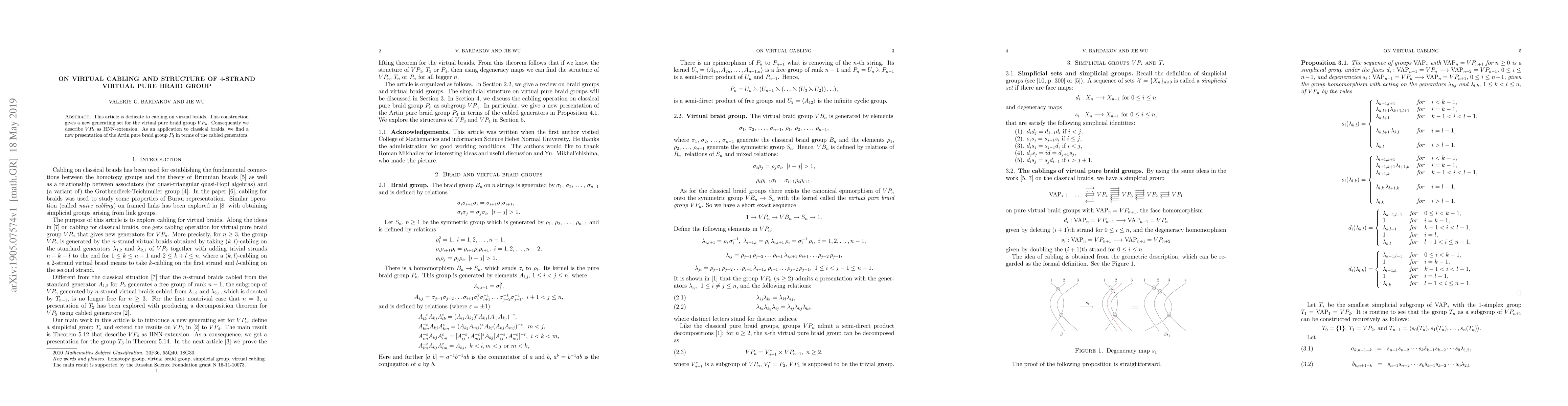 This article is dedicate to cabling on virtual braids. This construction gives a new generating set for the virtual pure braid group $VP_n$. Consequently we describe $VP_4$ as HNN-extension. As an application to classical braids, we find a new presentation of the Artin pure braid group $P_4$ in terms of the cabled generators.