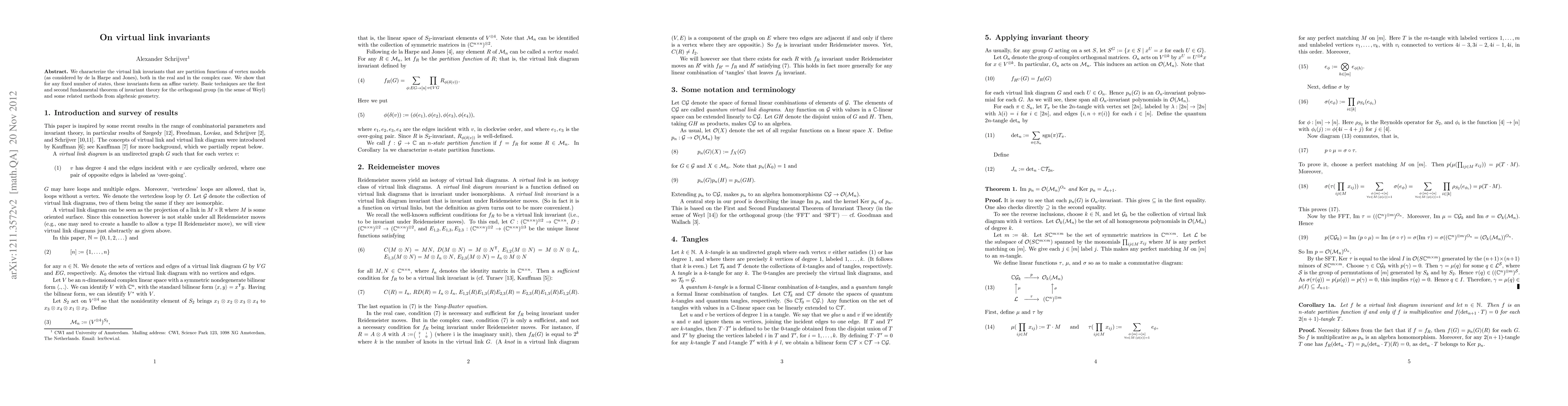 This paper characterizes virtual link invariants derived from vertex models, showing they form affine varieties for any fixed number of states. The research utilizes invariant theory for the orthogonal group and algebraic geometry techniques.