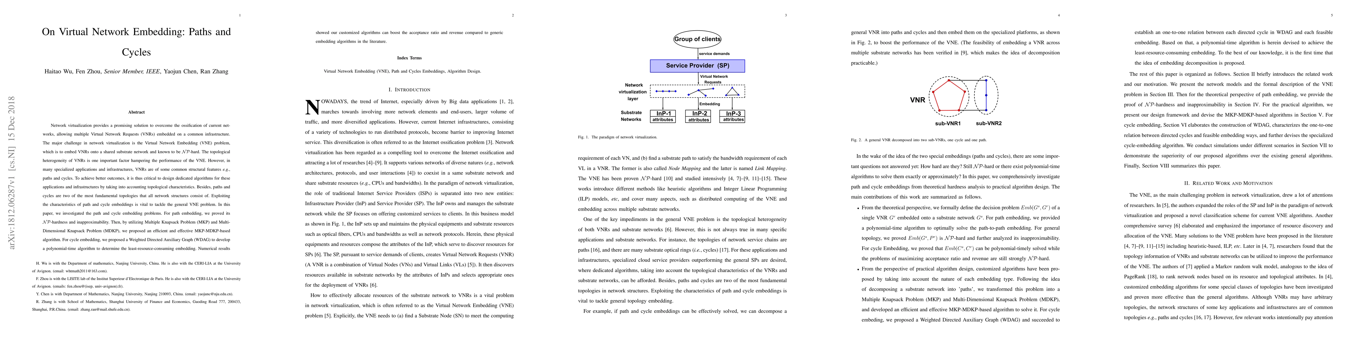 This paper investigates the Virtual Network Embedding (VNE) problem, focusing on path and cycle topologies. It proves the NP-hardness and inapproximability of path embedding, proposing an MKP-MDKP-based algorithm, and develops a polynomial-time algorithm for cycle embedding using a Weighted Directed Auxiliary Graph (WDAG), showing improved performance over generic algorithms.