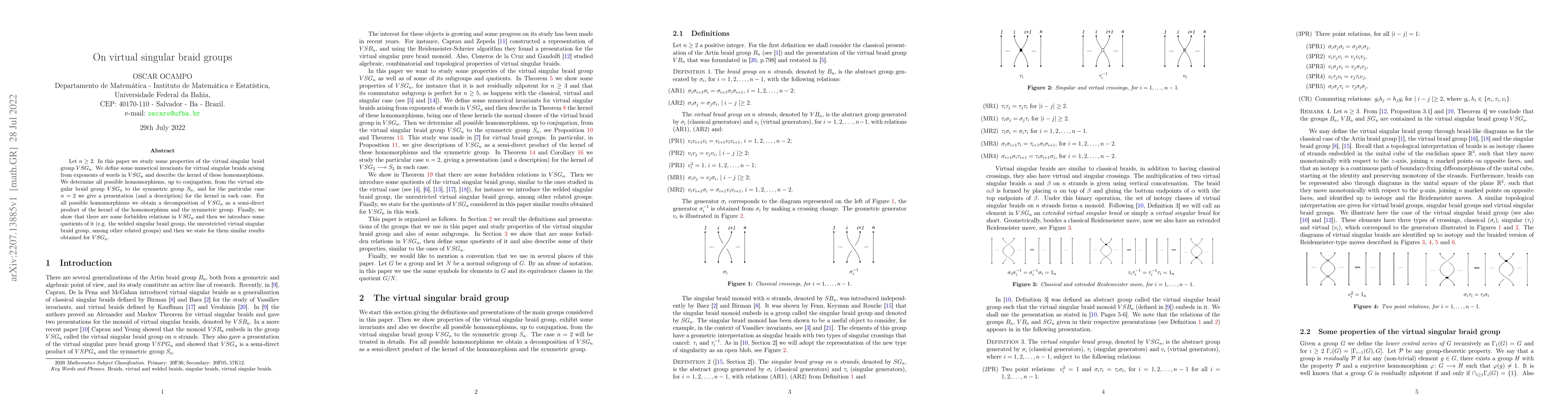 This paper investigates the properties of the virtual singular braid group $VSG_n$, defining numerical invariants from its word exponents and analyzing homomorphisms to the symmetric group $S_n$. It presents a decomposition of $VSG_n$ as a semi-direct product and identifies forbidden relations, while also introducing quotients and their analogous properties.