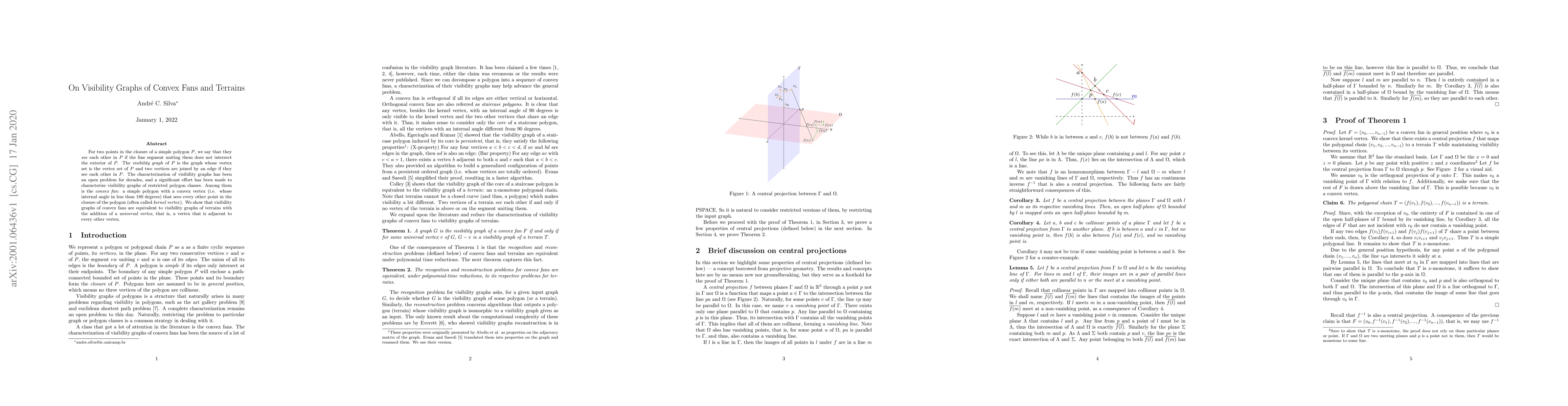 For two points in the closure of a simple polygon $P$, we say that they see each other in $P$ if the line segment uniting them does not intersect the exterior of $P$. The visibility graph of $P$ is the graph whose vertex set is the vertex set of $P$ and two vertices are joined by an edge if they see each other in $P$. The characterization of visibility graphs has been an open problem for decades, and a significant effort has been made to characterize visibility graphs of restricted polygon classes. Among them is the convex fan: a simple polygon with a convex vertex (i.e. whose internal angle in less than 180 degrees) that sees every other point in the closure of the polygon (often called kernel vertex). We show that visibility graphs of convex fans are equivalent to visibility graphs of terrains with the addition of a universal vertex, that is, a vertex that is adjacent to every other vertex.