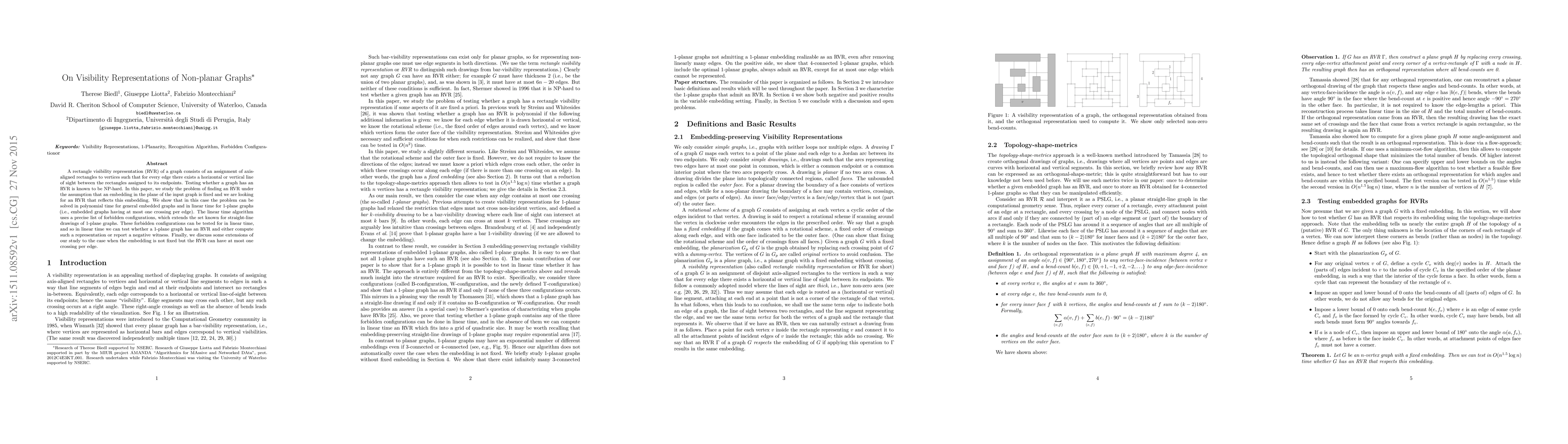 Researchers found that a specific type of graph visibility representation can be solved in polynomial time for general graphs with a fixed embedding, and in linear time for 1-plane graphs with a fixed embedding.