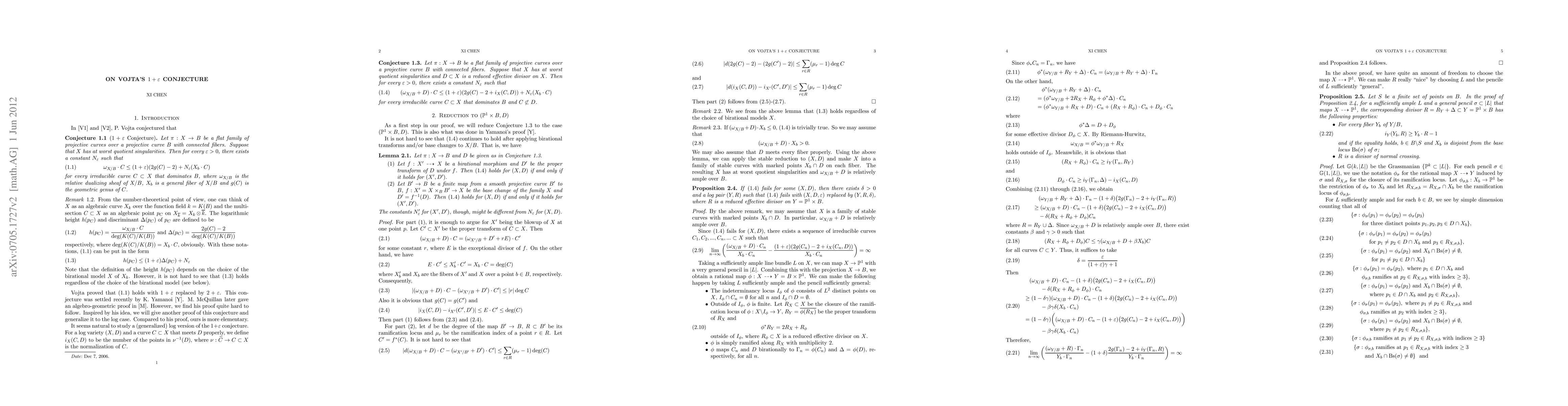 I gave a geometric proof of Vojta's 1 + epsilon conjecture. Some gaps in the published paper were spotted and kindly pointed out to me by Paul Vojta. These were addressed in "Erratum".