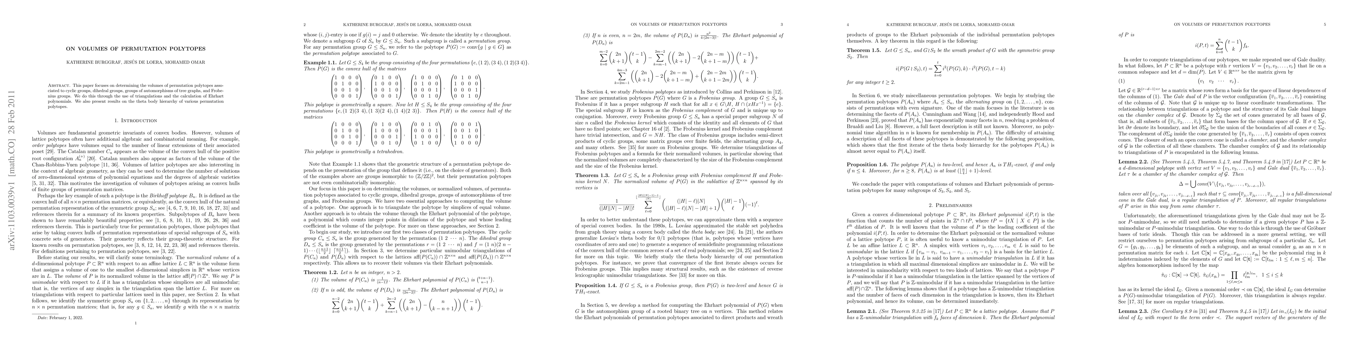 This paper explores the volumes of permutation polytopes linked to cyclic, dihedral, tree graph automorphism, and Frobenius groups, employing triangulations and Ehrhart polynomials for calculations, and discusses the theta body hierarchy of these polytopes.