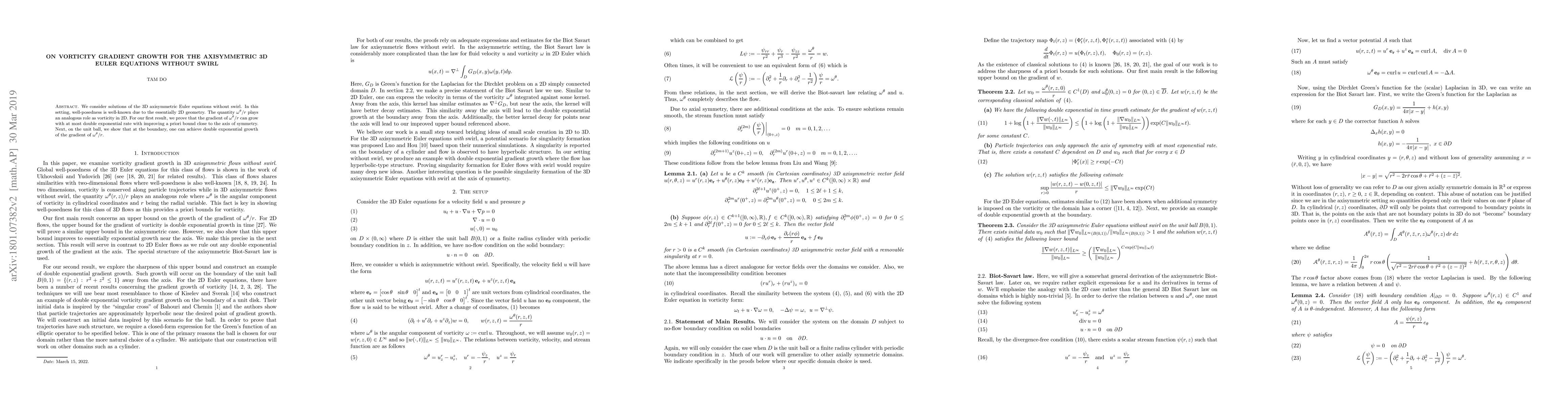 This paper investigates the 3D axisymmetric Euler equations without swirl, demonstrating that the gradient of $\omega^\theta/r$ can grow at most double exponentially near the axis of symmetry. On the unit ball, it shows double exponential growth of this gradient at the boundary.