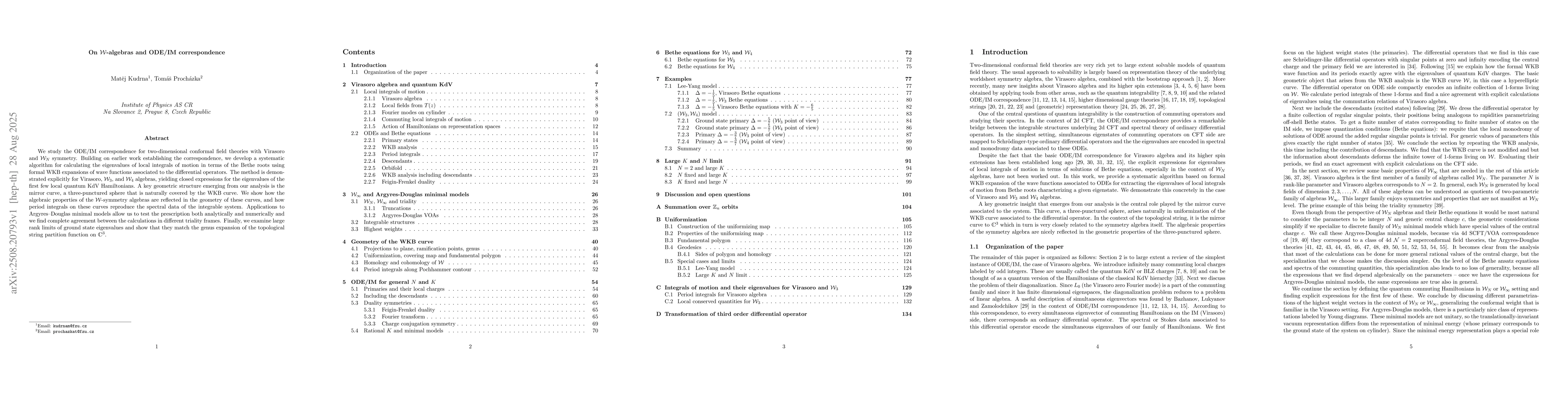 We study the ODE/IM correspondence for two-dimensional conformal field theories with Virasoro and $\mathcal{W}_N$ symmetry. Building on earlier work establishing the correspondence, we develop a systematic algorithm for calculating the eigenvalues of local integrals of motion in terms of the Bethe roots using formal WKB expansions of wave functions associated to the differential operators. The method is demonstrated explicitly for Virasoro, $\mathcal{W}_3$, and $\mathcal{W}_4$ algebras, yielding closed expressions for the eigenvalues of the first few local quantum KdV Hamiltonians. A key geometric structure emerging from our analysis is the mirror curve, a three-punctured sphere that is naturally covered by the WKB curve. We show how the algebraic properties of the $\mathcal{W}$-symmetry algebras are reflected in the geometry of these curves, and how period integrals on these curves reproduce the spectral data of the integrable system. Applications to Argyres-Douglas minimal models allow us to test the prescription both analytically and numerically and we find complete agreement between the calculations in different triality frames. Finally, we examine large rank limits of ground state eigenvalues and show that they match the genus expansion of the topological string partition function on $\mathbb{C}^3$.