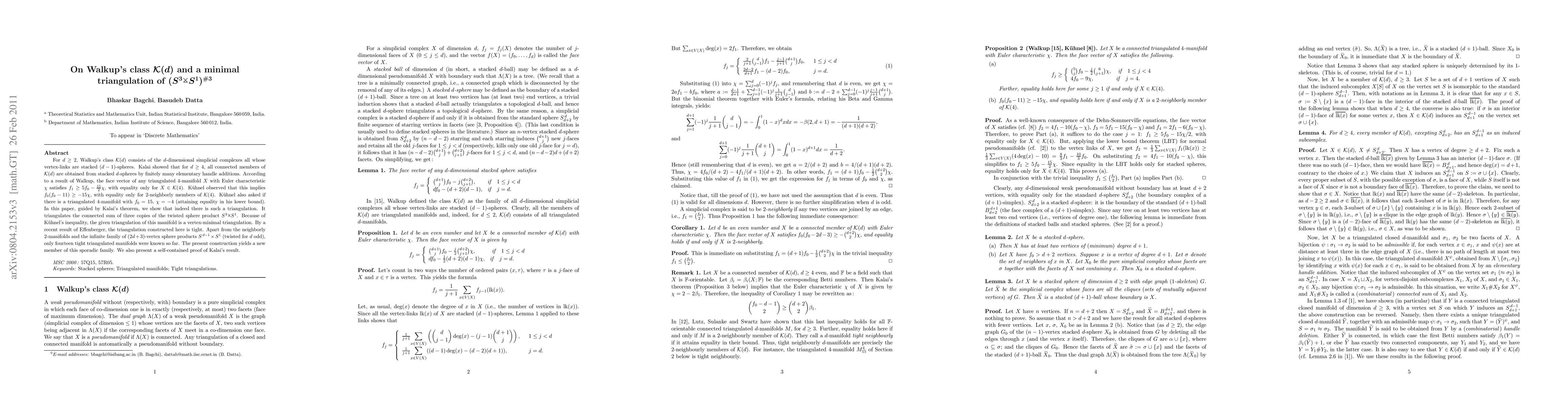 For $d \geq 2$, Walkup's class ${\cal K}(d)$ consists of the $d$-dimensional simplicial complexes all whose vertex-links are stacked $(d-1)$-spheres. Kalai showed that for $d \geq 4$, all connected members of ${\cal K}(d)$ are obtained from stacked $d$-spheres by finitely many elementary handle additions. According to a result of Walkup, the face vector of any triangulated 4-manifold $X$ with Euler characteristic $\chi$ satisfies $f_1 \geq 5f_0 - {15/2} \chi$, with equality only for $X \in {\cal K}(4)$. K\"{u}hnel observed that this implies $f_0(f_0 - 11) \geq -15\chi$, with equality only for 2-neighborly members of ${\cal K}(4)$. K\"{u}hnel also asked if there is a triangulated 4-manifold with $f_0 = 15$, $\chi = -4$ (attaining equality in his lower bound). In this paper, guided by Kalai's theorem, we show that indeed there is such a triangulation. It triangulates the connected sum of three copies of the twisted sphere product $S^3 \times {-2.8mm}_{-} S^1$. Because of K\"{u}hnel's inequality, the given triangulation of this manifold is a vertex-minimal triangulation. By a recent result of Effenberger, the triangulation constructed here is tight. Apart from the neighborly 2-manifolds and the infinite family of $(2d+ 3)$-vertex sphere products $S^{d-1} \times S^1$ (twisted for $d$ odd), only fourteen tight triangulated manifolds were known so far. The present construction yields a new member of this sporadic family. We also present a self-contained proof of Kalai's result.