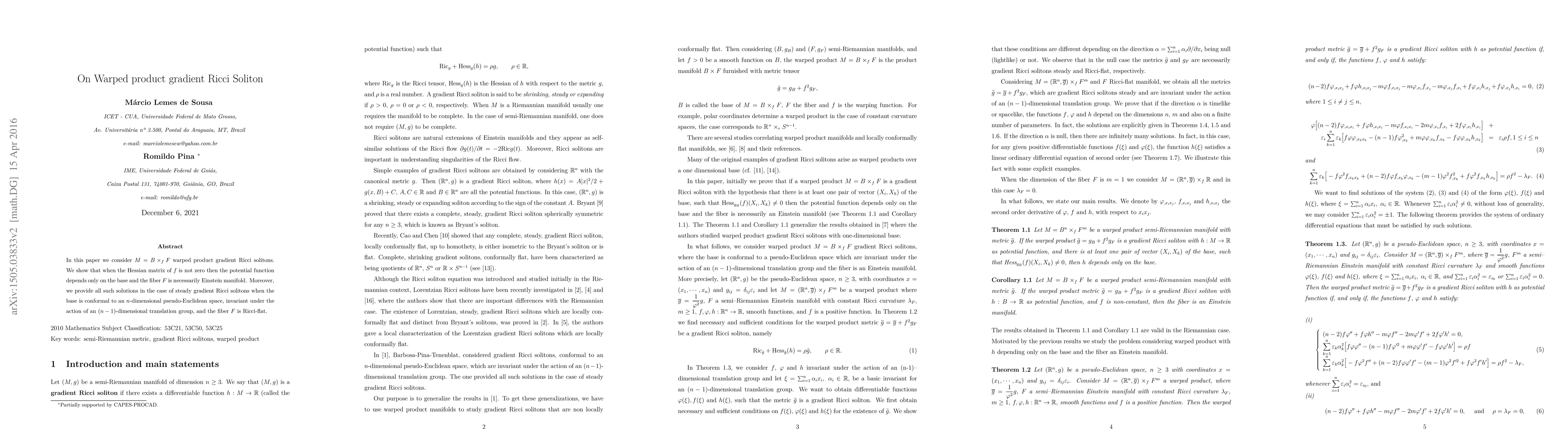 This paper explores warped product gradient Ricci solitons, proving that the potential function depends solely on the base and the fiber, which must be an Einstein manifold. It provides all solutions for steady gradient Ricci solitons when the base is conformal to an $n$-dimensional pseudo-Euclidean space and the fiber $F$ is Ricci-flat.