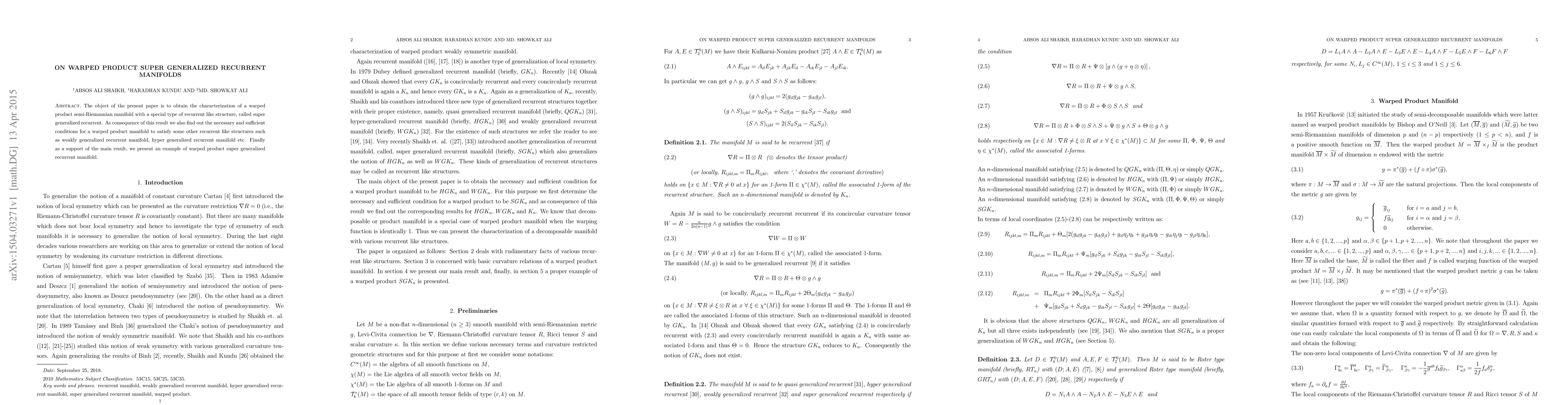The object of the present paper is to obtain the characterization of a warped product semi-Riemannian manifold with a special type of recurrent like structure, called super generalized recurrent. As consequence of this result we also find out the necessary and sufficient conditions for a warped product manifold to satisfy some other recurrent like structures such as weakly generalized recurrent manifold, hyper generalized recurrent manifold etc. Finally as a support of the main result, we present an example of warped product super generalized recurrent manifold.