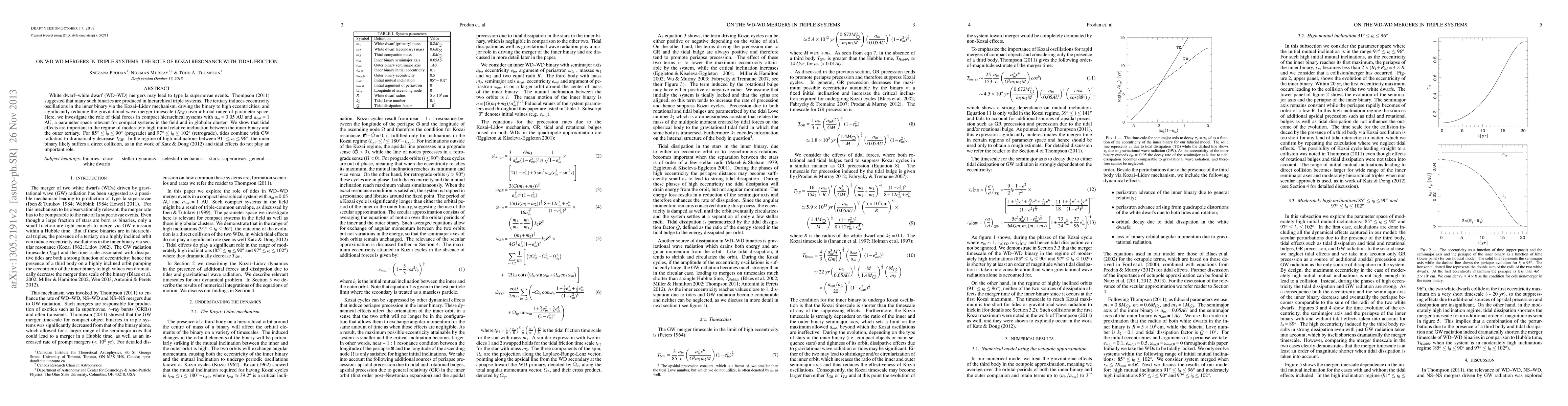 White dwarf-white dwarf (WD-WD) mergers may lead to type Ia supernovae events. Thompson (2011) suggested that many such binaries are produced in hierarchical triple systems. The tertiary induces eccentricity oscillations in the inner binary via the Kozai-Lidov mechanism, driving the binary to high eccentricities, and significantly reducing the gravitational wave merger timescale (T_GW) over a broad range of parameter space. Here, we investigate the role of tidal forces in these systems. We show that tidal effects are important in the regime of moderately high initial relative inclination between the inner binary and the outer tertiary. For 85 < i_0 < 90 degrees (prograde) and 97 < i_0 < 102 degrees (retrograde), tides combine with GW radiation to dramatically decrease T_GW. In the regime of high inclinations between 91 < i_0 < 96 degrees, the inner binary likely suffers a direct collision, as in the work of Katz & Dong (2012) and tidal effects do not play an important role.