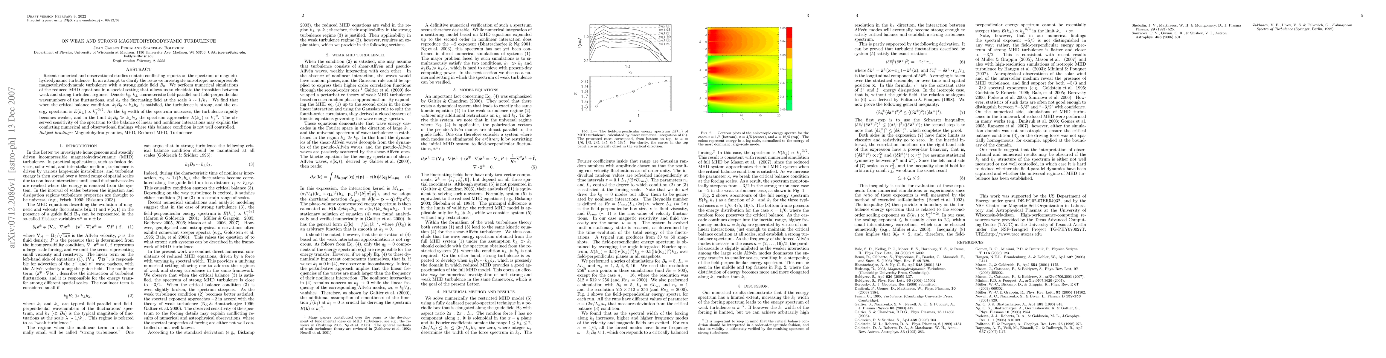 This paper investigates anisotropic incompressible magnetohydrodynamic turbulence with a strong guide field, finding that when the critical balance condition is met, the turbulence is strong with a $k^{-3/2}_{\perp}$ energy spectrum. As the field-parallel wavenumber increases, turbulence weakens, approaching a $k_{\perp}^{-2}$ spectrum, explaining conflicting numerical and observational reports.
