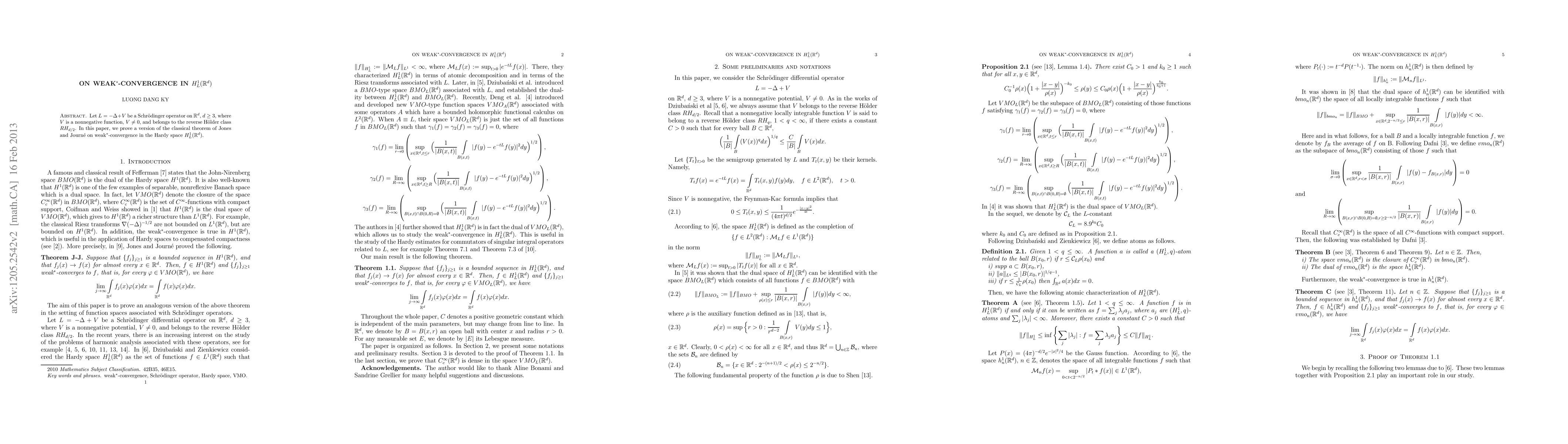 This paper proves a version of Jones and Journ\'e's theorem on weak$^*$-convergence in the Hardy space $H^1_L(\mathbb R^d)$ for a Schrödinger operator $L= -\Delta+ V$ with $V$ being a nonnegative function in the reverse Hölder class $RH_{d/2}$.