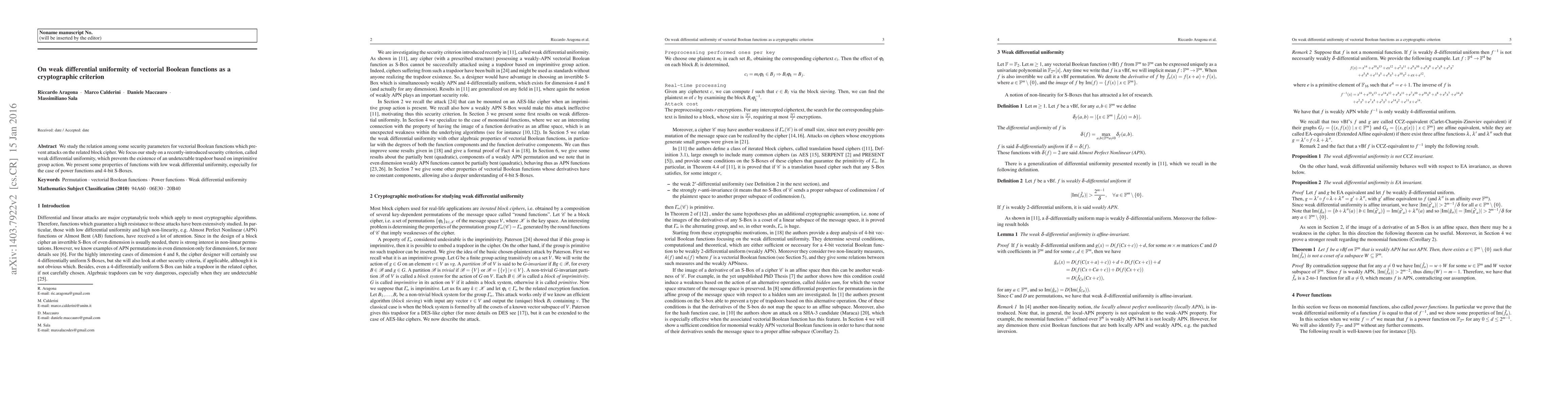 This paper investigates the security criterion of weak differential uniformity in vectorial Boolean functions, which is crucial for resisting attacks on block ciphers. It explores properties of functions with low weak differential uniformity, particularly focusing on power functions and 4-bit S-Boxes.