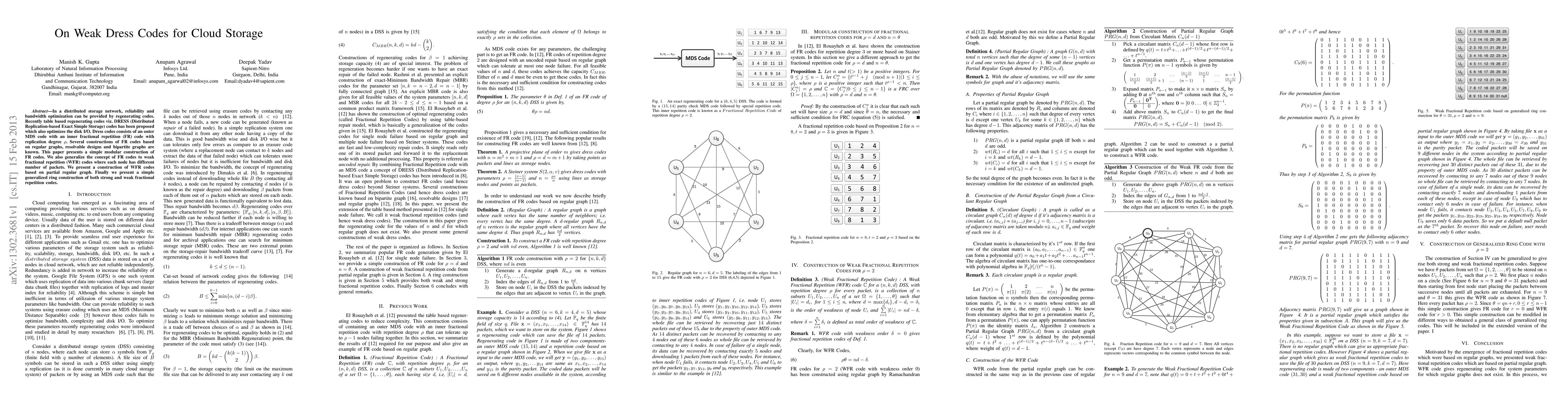 In a distributed storage network, reliability and bandwidth optimization can be provided by regenerating codes. Recently table based regenerating codes viz. DRESS (Distributed Replication-based Exact Simple Storage) codes has been proposed which also optimizes the disk I/O. Dress codes consists of an outer MDS code with an inner fractional repetition (FR) code with replication degree $\rho$. Several constructions of FR codes based on regular graphs, resolvable designs and bipartite graphs are known. This paper presents a simple modular construction of FR codes. We also generalize the concept of FR codes to weak fractional repetition (WFR) codes where each node has different number of packets. We present a construction of WFR codes based on partial regular graph. Finally we present a simple generalized ring construction of both strong and weak fractional repetition codes.