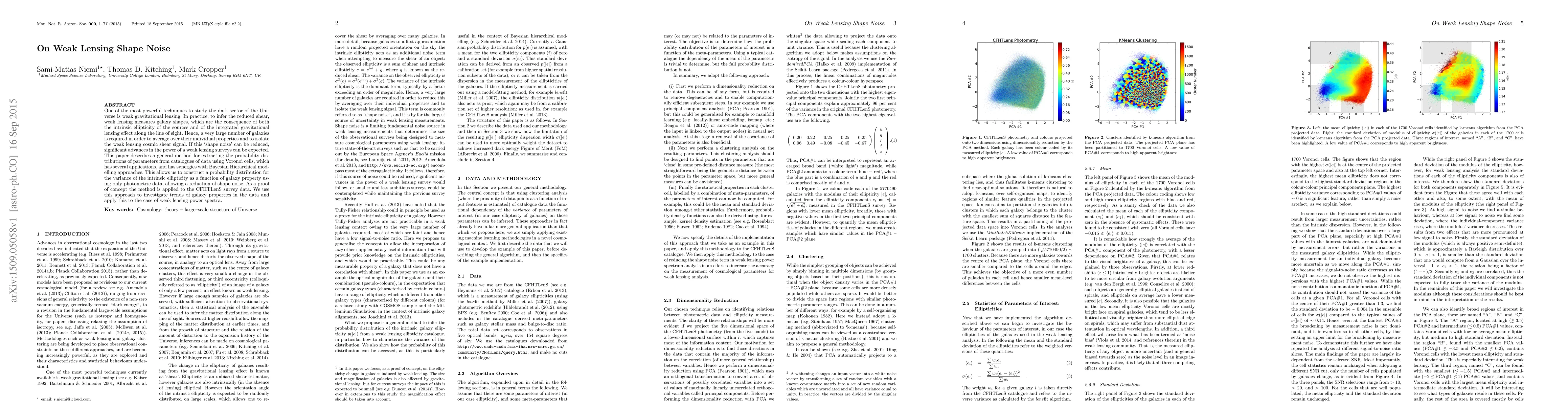 One of the most powerful techniques to study the dark sector of the Universe is weak gravitational lensing. In practice, to infer the reduced shear, weak lensing measures galaxy shapes, which are the consequence of both the intrinsic ellipticity of the sources and of the integrated gravitational lensing effect along the line of sight. Hence, a very large number of galaxies is required in order to average over their individual properties and to isolate the weak lensing cosmic shear signal. If this `shape noise' can be reduced, significant advances in the power of a weak lensing surveys can be expected. This paper describes a general method for extracting the probability distributions of parameters from catalogues of data using Voronoi cells, which has several applications, and has synergies with Bayesian hierarchical modelling approaches. This allows us to construct a probability distribution for the variance of the intrinsic ellipticity as a function of galaxy property using only photometric data, allowing a reduction of shape noise. As a proof of concept the method is applied to the CFHTLenS survey data. We use this approach to investigate trends of galaxy properties in the data and apply this to the case of weak lensing power spectra.