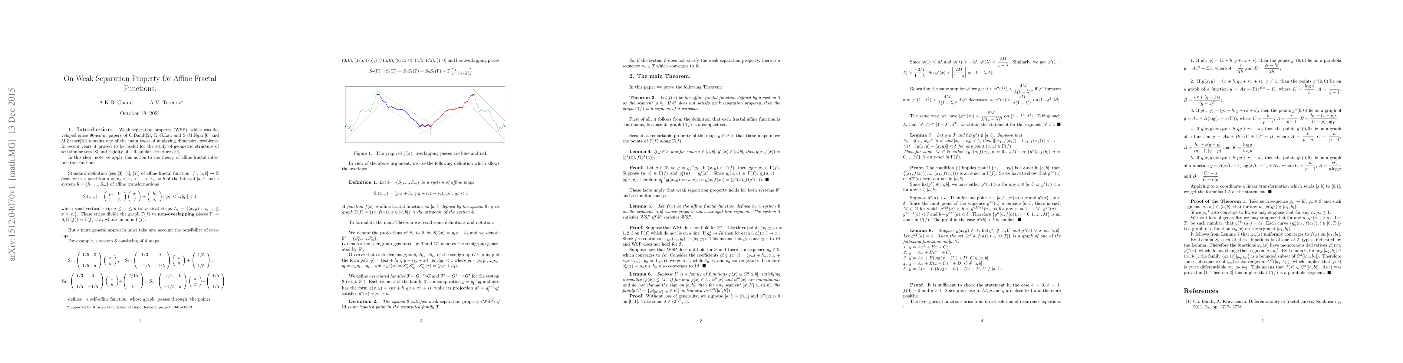 We show that a fractal affine function $f(x)$ defined by a system $\mathcal S$ which does not satisfy weak separation property is a quadratic function.