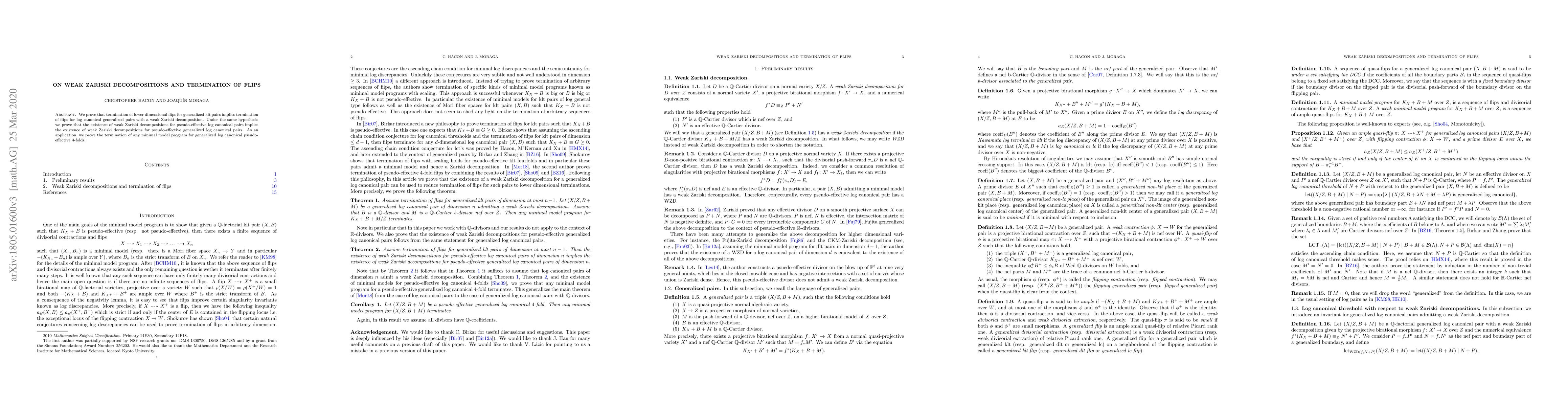 The paper proves that the termination of flips for lower-dimensional generalized klt pairs leads to the termination of flips for log canonical generalized pairs with weak Zariski decompositions, and establishes that the existence of weak Zariski decompositions in pseudo-effective generalized klt pairs ensures the existence of minimal models.