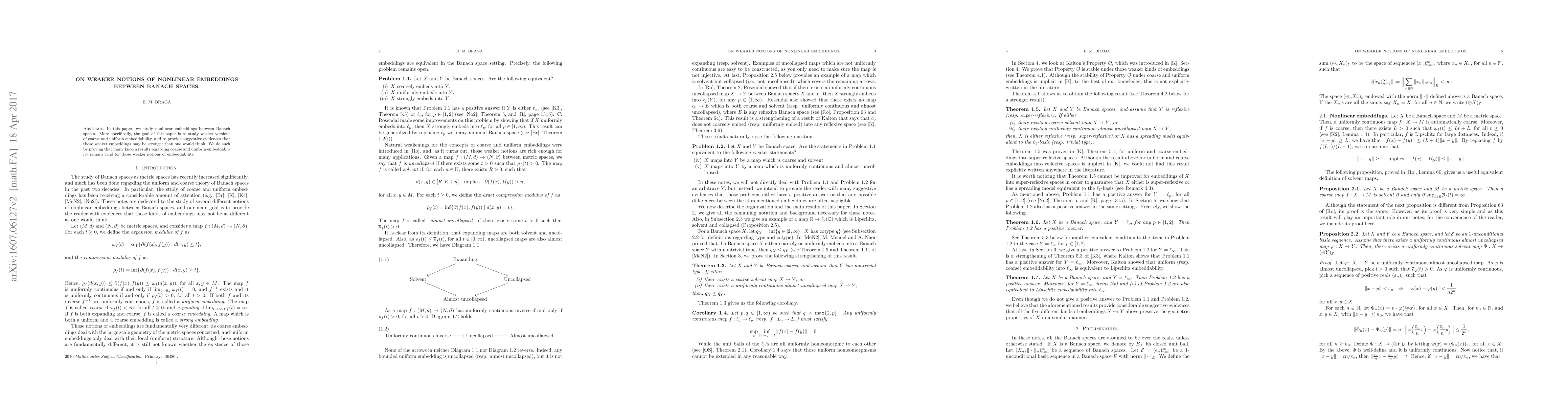 This paper investigates weaker forms of nonlinear embeddings between Banach spaces, demonstrating that these weaker versions retain many properties of traditional coarse and uniform embeddings. The authors provide evidence suggesting these weaker embeddings may be more robust than initially anticipated.