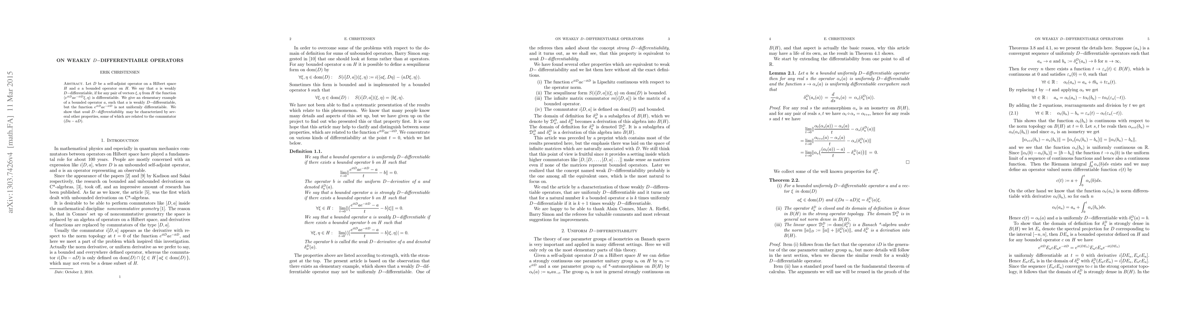 operator a on H we say that a is weakly D-differentiable if for any pair of