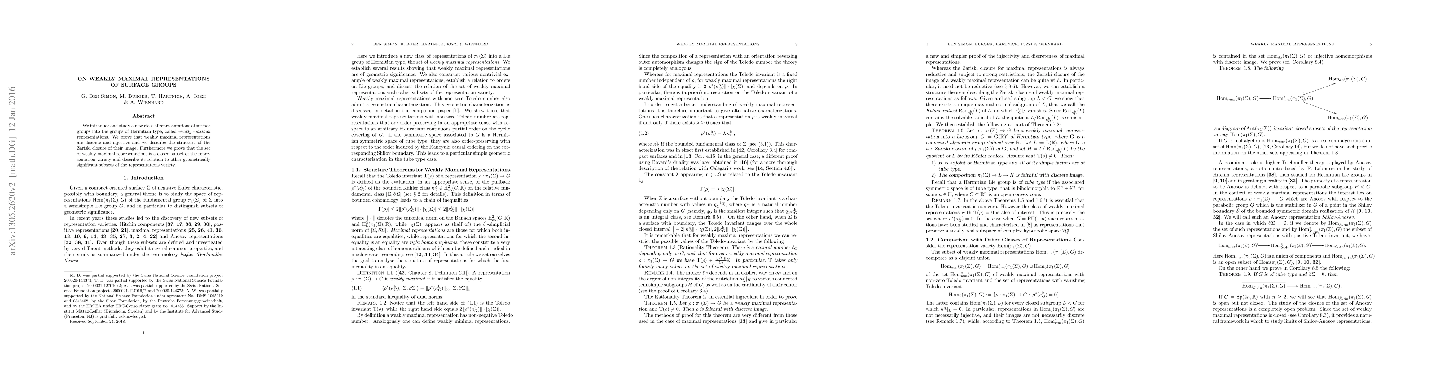 This paper introduces weakly maximal representations of surface groups into Hermitian Lie groups, proving they are discrete, injective, and characterizing their Zariski closure. It also establishes that this set of representations forms a closed subset in the representation variety and relates it to other significant subsets.