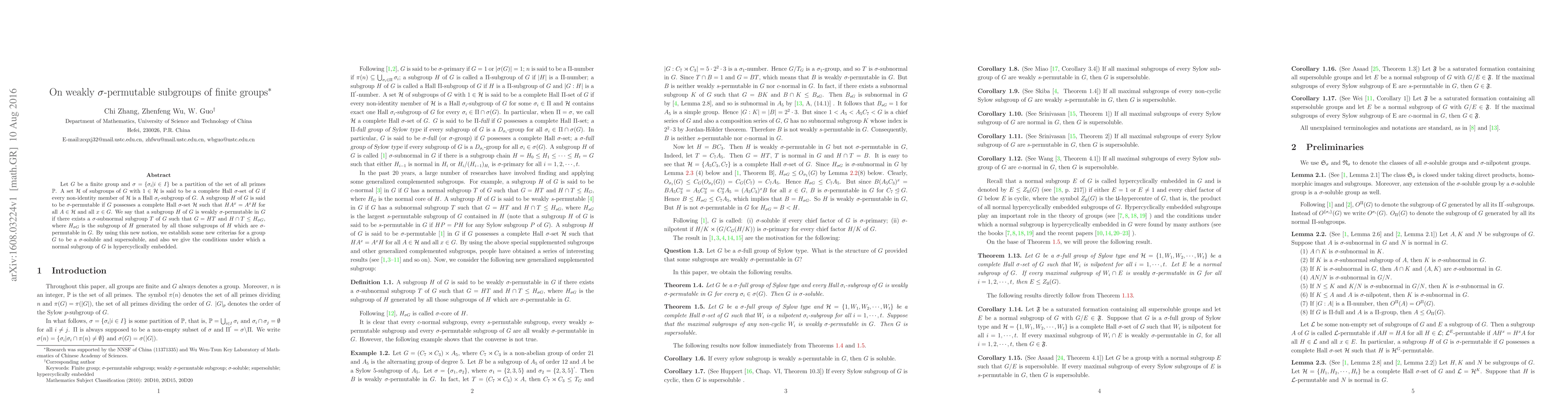 Let G be a finite group and {\sigma} = {{\sigma}_i, i \in I} be a partition of the set of all primes \mathbb{P}. A set \mathcal{H} of subgroups of G with 1 \in \mathcal{H} is said to be a complete Hall {\sigma}-set of G if every non-identity member of \mathcal{H} is a Hall {\sigma}_i-subgroup of G. A subgroup H of G is said to be {\sigma}-permutable if G possesses a complete Hall {\sigma}-set \mathcal{H} such that HA^x = A^xH for all A \in \mathcal{H} and all x \in G. We say that a subgroup H of G is weakly {\sigma}-permutable in G if there exists a {\sigma}-subnormal subgroup T of G such that G = HT and H \cap T \leq H_{\sigma}G. where H_{\sigma}G is the subgroup of H generated by all those subgroups of H which are {\sigma}-permutable in G. By using this new notion, we establish some new criterias for a group G to be a {\sigma}-soluble and supersoluble, and also we give the conditions under which a normal subgroup of G is hypercyclically embedded.