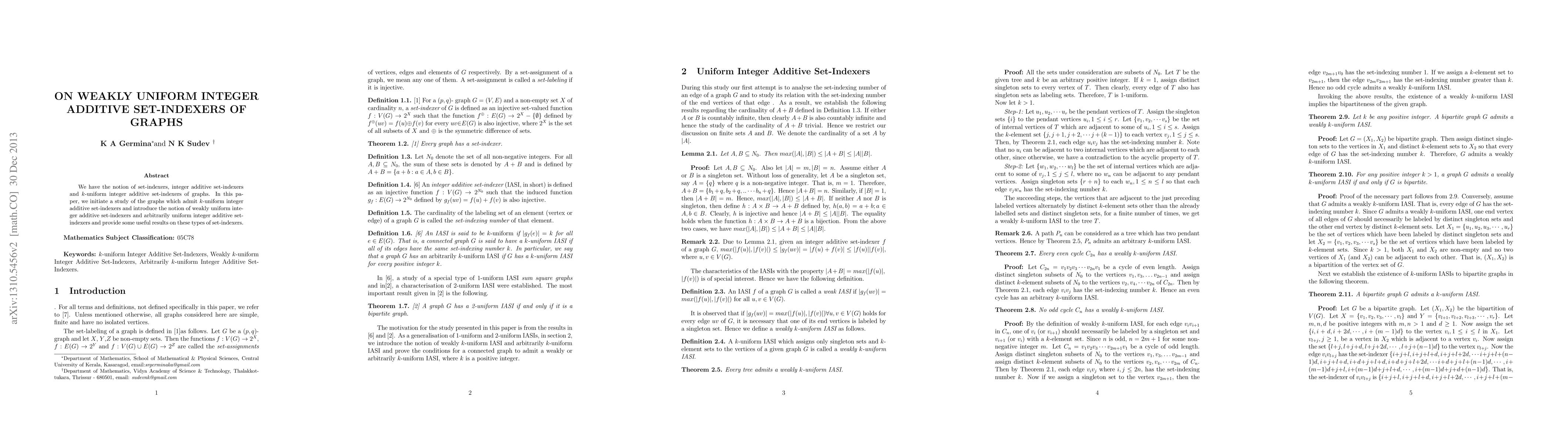 Acharya introduced the notion of set-valuations of graphs as a set analogue of the number valuations of graphs. Also we have the notion of set-indexers, integer additive set-indexers and k-uniform integer additive set-indexers. In this paper, we initiate a study of the graphs which admit k-uniform integer additive set-indexers as a generalisation to the earlier studies of 1-uniform and 2-uniform integer additive set-indexers. We introduce the notion of weakly uniform integer additive set-indexers and arbitrarily uniform integer additive set-indexers based on the cardinality of the labeling sets and provide some useful results on these types of set-indexers.