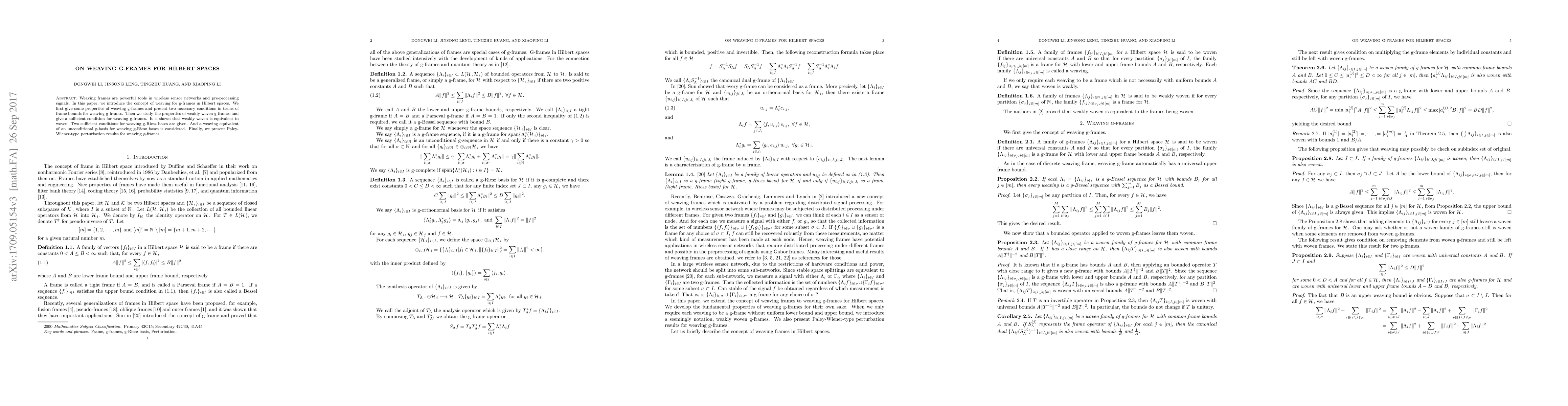 The paper introduces and develops the concept of weaving g-frames, providing necessary and sufficient conditions, and exploring perturbation results, thus advancing the theoretical understanding of g-frames in Hilbert spaces.