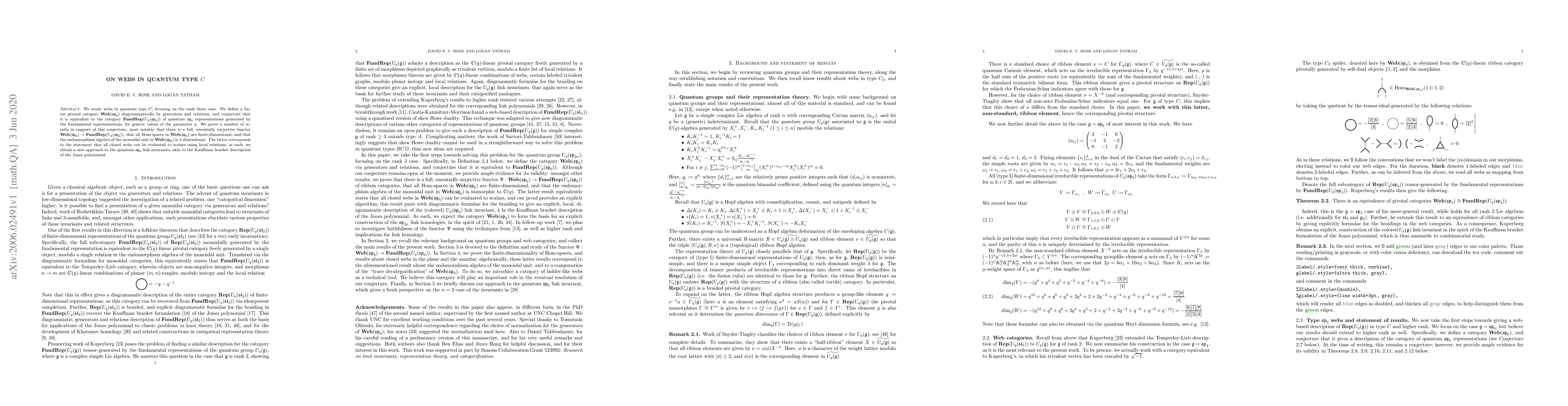 Researchers study webs in quantum type $C$ and conjecture their equivalence to a category of representations for the quantum $rak{sp}_6$ algebra, proving key results that support this claim.