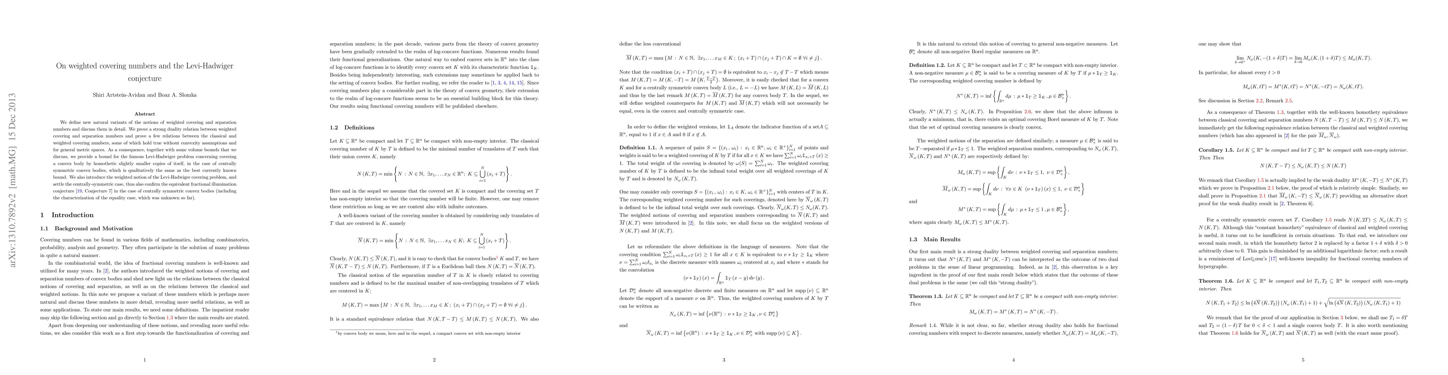 This paper introduces new weighted covering and separation numbers, proving a strong duality between them and establishing relations with classical covering numbers. It provides a bound for the Levi-Hadwiger problem for centrally symmetric convex bodies, confirming Naszódi's conjecture and characterizing the equality case.