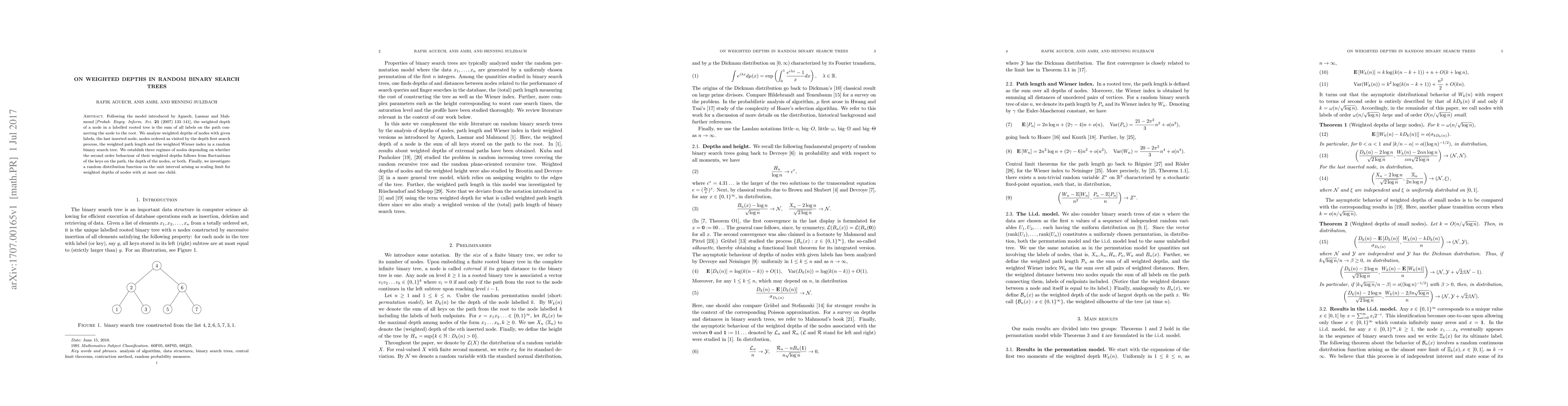 This paper analyzes weighted depths in random binary search trees, categorizing nodes based on their weighted depth regimes influenced by key fluctuations, node depth, or both. It also explores the scaling limit of weighted depths for nodes with at most one child, revealing a random distribution function on the unit interval.